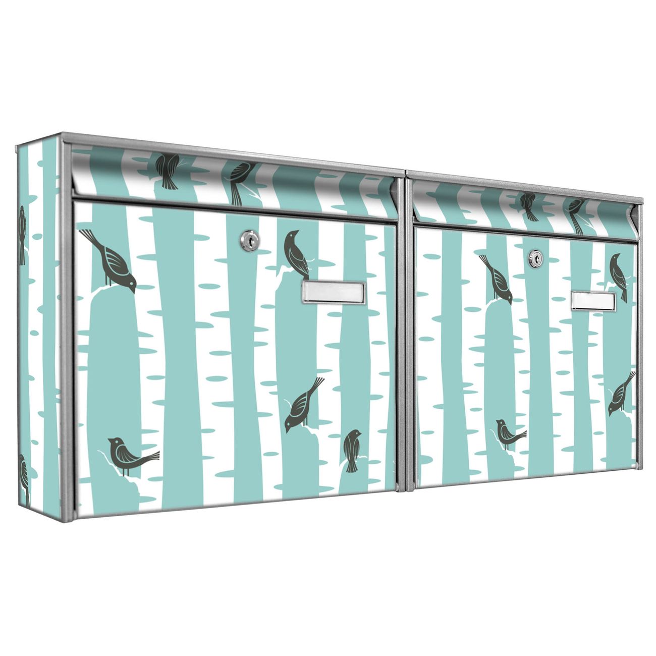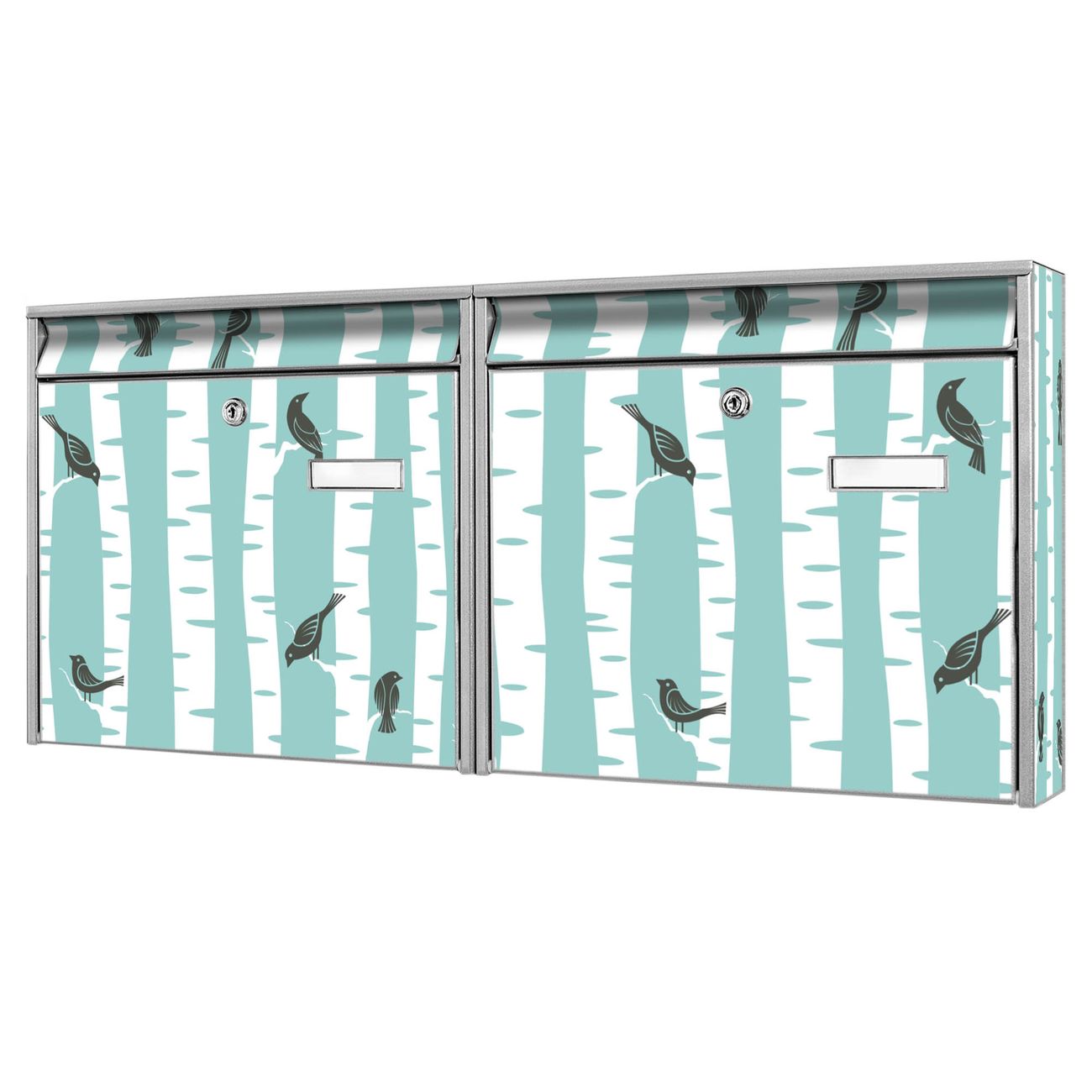 FUNKTION: Die Burg Wächter doppel Briefkastenanlage mit Motiv Stare Und Birken bietet Ihnen ein großes Fassungsvermögen, sodass auch A4 Sendungen eingeworfen werden können. Das Namensschild lässt sich individuell beschriften. DESIGN: Die 2 Briefkästen mit Stare Und Birken Motiv haben ein sehr ansprechendes und zeitloses Design. Heben Sie Sich von der tristen grauen Masse ab, ohne auf Funktionalität zu verzichten. Sie erhalten 2 Schlüssel sowie das Montagematerial. DETAILS: Der Doppelbriefkasten besteht aus verzinktem Stahl weiß. Er ist 72,5cm x 32,2cm x 10cm groß. Das Motiv besteht aus einer wetter- und UV-festen Folie, die Ihren Briefkasten zusätzlich vor Kratzern schützt. NUTZEN: Die stabile Bauart sowie die Wetterfestigkeit machen diese doppel Briefkästen zu einem zuverlässigen Begleiter im Alltag. Effektvoll in Reihe gehangen schmückt die Anlage jede Hauswand. BANJADO: Ihr Briefkasten wird in Sachsen in einer kleinen Manufaktur von Hand veredelt. Die Motivfolie ist lösungsmittelfrei und schutzlaminiert für einen langen Halt. Wir legen großen Wert auf die Verbindung von Funktionalität und Design. Sie erhalten Handarbeit aus Sachsen.