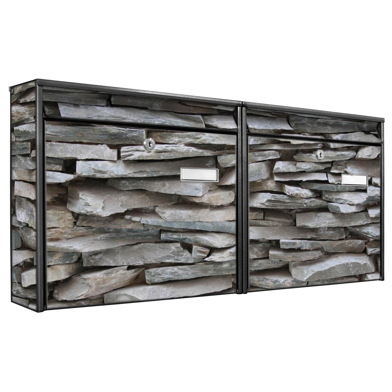 Doppelbriefkasten quer Steinwand