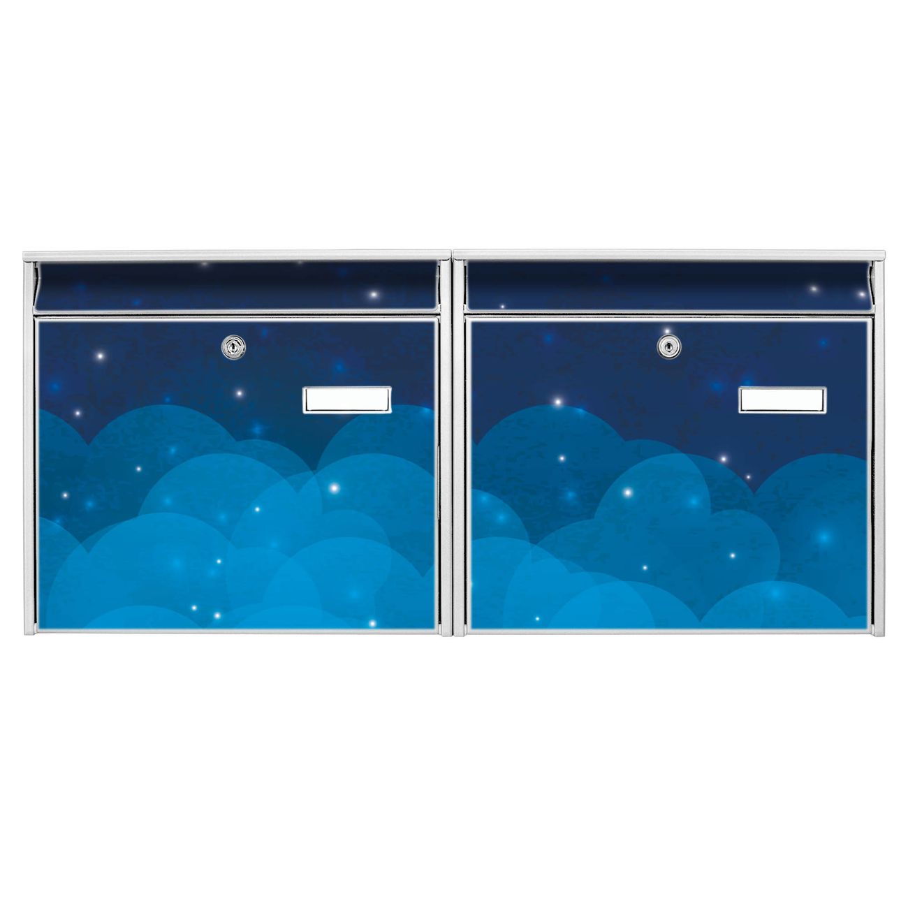 FUNKTION: Die Burg Wächter doppel Briefkastenanlage mit Motiv Sternenhimmel 2 bietet Ihnen ein großes Fassungsvermögen, sodass auch A4 Sendungen eingeworfen werden können. Das Namensschild lässt sich individuell beschriften. DESIGN: Die 2 Briefkästen mit Sternenhimmel 2 Motiv haben ein sehr ansprechendes und zeitloses Design. Heben Sie Sich von der tristen grauen Masse ab, ohne auf Funktionalität zu verzichten. Sie erhalten 2 Schlüssel sowie das Montagematerial. DETAILS: Der Doppelbriefkasten besteht aus verzinktem Stahl weiß. Er ist 72,5cm x 32,2cm x 10cm groß. Das Motiv besteht aus einer wetter- und UV-festen Folie, die Ihren Briefkasten zusätzlich vor Kratzern schützt. NUTZEN: Die stabile Bauart sowie die Wetterfestigkeit machen diese doppel Briefkästen zu einem zuverlässigen Begleiter im Alltag. Effektvoll in Reihe gehangen schmückt die Anlage jede Hauswand. BANJADO: Ihr Briefkasten wird in Sachsen in einer kleinen Manufaktur von Hand veredelt. Die Motivfolie ist lösungsmittelfrei und schutzlaminiert für einen langen Halt. Wir legen großen Wert auf die Verbindung von Funktionalität und Design. Sie erhalten Handarbeit aus Sachsen.
