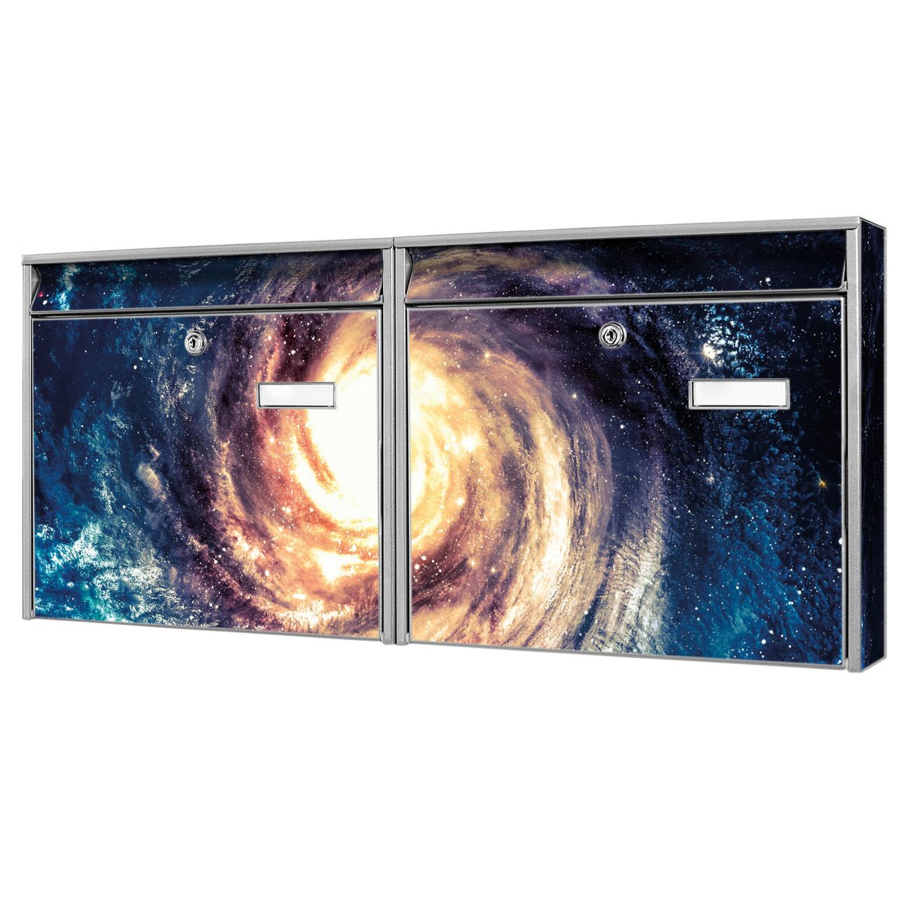 FUNKTION: Die Burg Wächter doppel Briefkastenanlage mit Motiv Sternenwirbel bietet Ihnen ein großes Fassungsvermögen, sodass auch A4 Sendungen eingeworfen werden können. Das Namensschild lässt sich individuell beschriften. DESIGN: Die 2 Briefkästen mit Sternenwirbel Motiv haben ein sehr ansprechendes und zeitloses Design. Heben Sie Sich von der tristen grauen Masse ab, ohne auf Funktionalität zu verzichten. Sie erhalten 2 Schlüssel sowie das Montagematerial. DETAILS: Der Doppelbriefkasten besteht aus verzinktem Stahl weiß. Er ist 72,5cm x 32,2cm x 10cm groß. Das Motiv besteht aus einer wetter- und UV-festen Folie, die Ihren Briefkasten zusätzlich vor Kratzern schützt. NUTZEN: Die stabile Bauart sowie die Wetterfestigkeit machen diese doppel Briefkästen zu einem zuverlässigen Begleiter im Alltag. Effektvoll in Reihe gehangen schmückt die Anlage jede Hauswand. BANJADO: Ihr Briefkasten wird in Sachsen in einer kleinen Manufaktur von Hand veredelt. Die Motivfolie ist lösungsmittelfrei und schutzlaminiert für einen langen Halt. Wir legen großen Wert auf die Verbindung von Funktionalität und Design. Sie erhalten Handarbeit aus Sachsen.