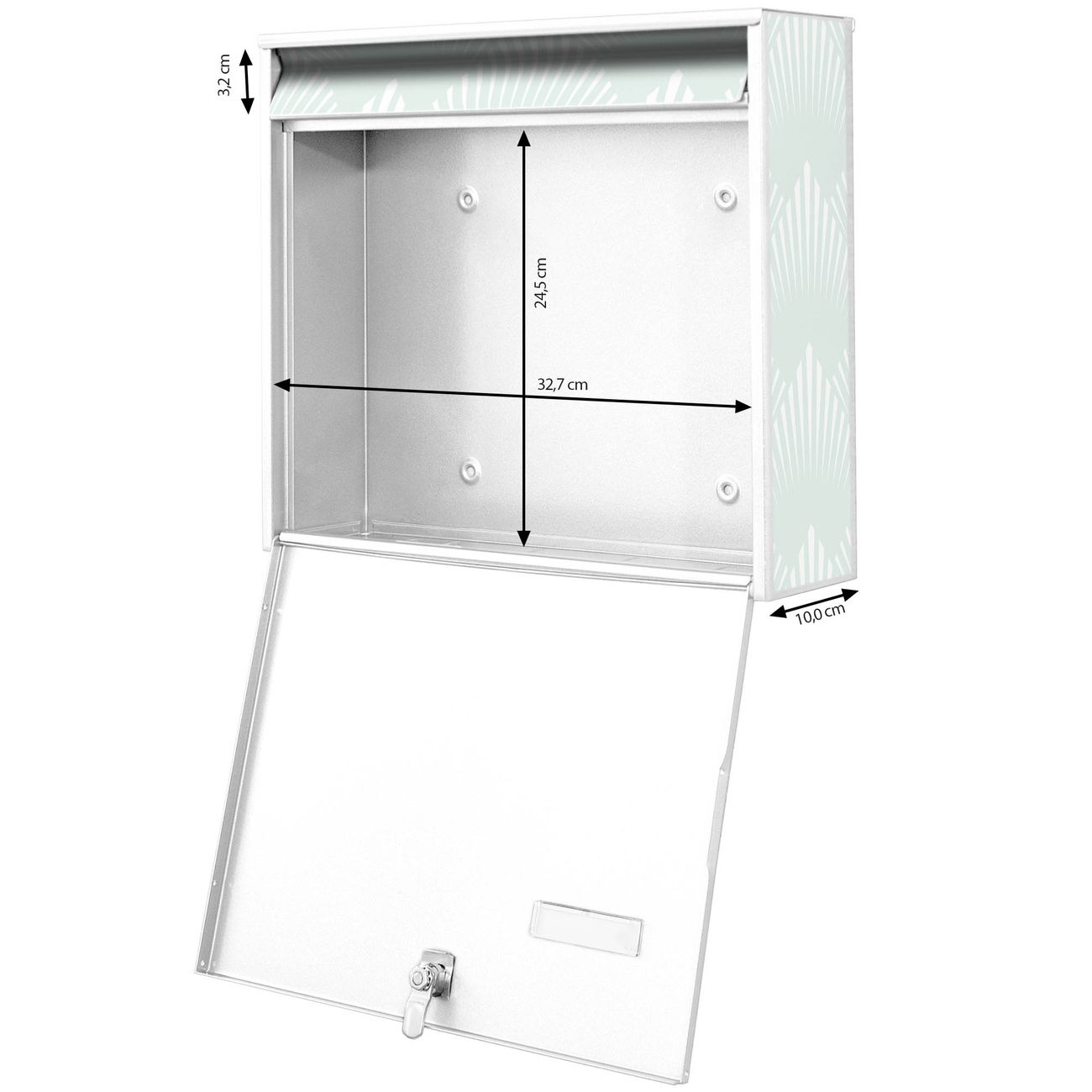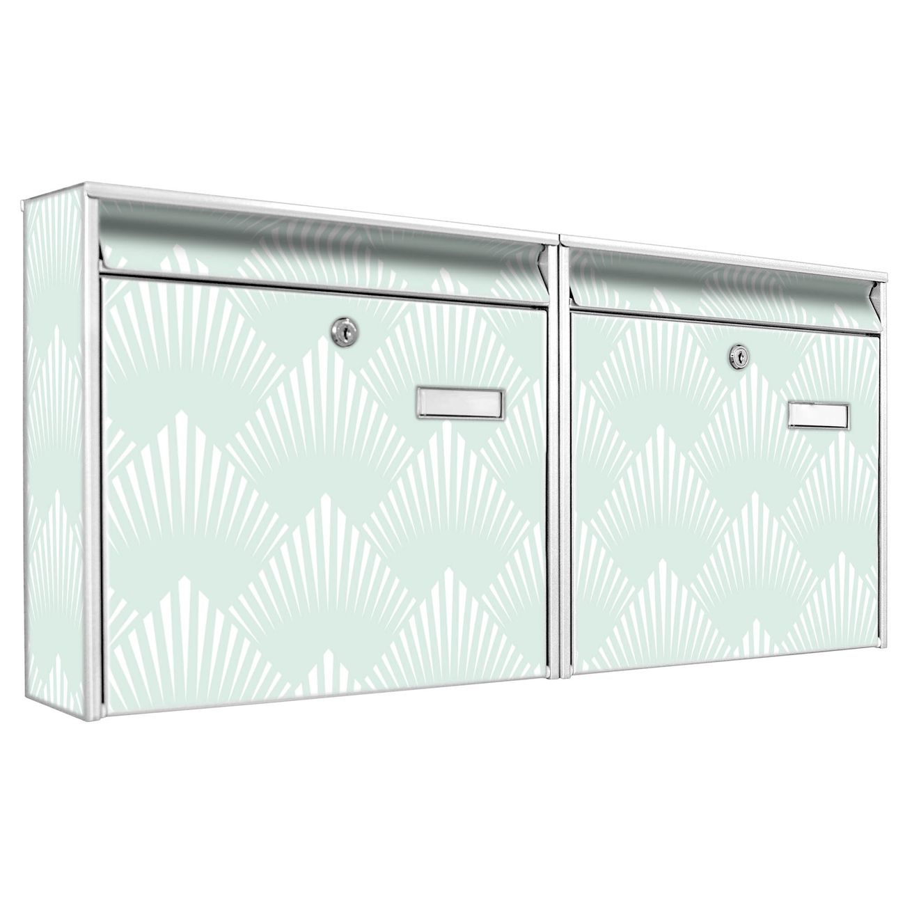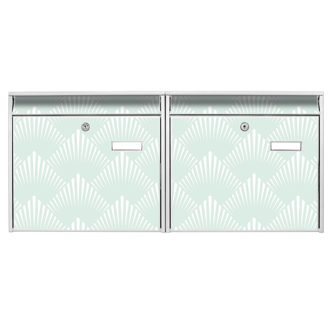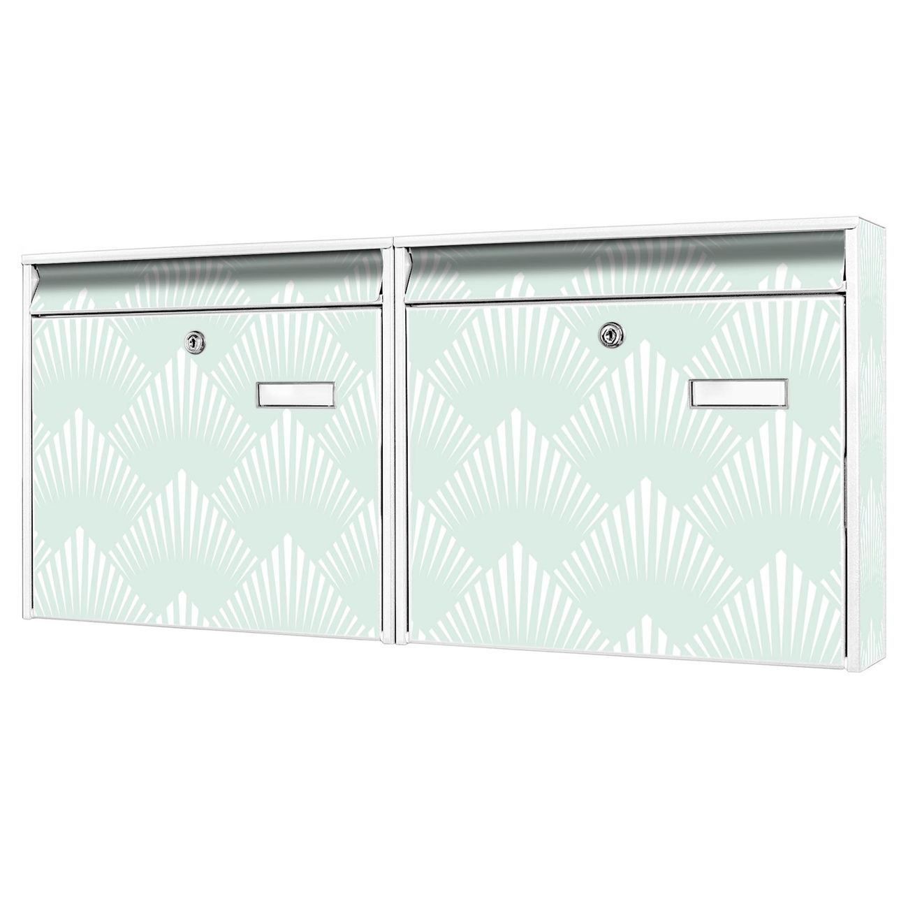 FUNKTION: Die Burg Wächter doppel Briefkastenanlage mit Motiv Strahlen Mint bietet Ihnen ein großes Fassungsvermögen, sodass auch A4 Sendungen eingeworfen werden können. Das Namensschild lässt sich individuell beschriften. DESIGN: Die 2 Briefkästen mit Strahlen Mint Motiv haben ein sehr ansprechendes und zeitloses Design. Heben Sie Sich von der tristen grauen Masse ab, ohne auf Funktionalität zu verzichten. Sie erhalten 2 Schlüssel sowie das Montagematerial. DETAILS: Der Doppelbriefkasten besteht aus verzinktem Stahl weiß. Er ist 72,5cm x 32,2cm x 10cm groß. Das Motiv besteht aus einer wetter- und UV-festen Folie, die Ihren Briefkasten zusätzlich vor Kratzern schützt. NUTZEN: Die stabile Bauart sowie die Wetterfestigkeit machen diese doppel Briefkästen zu einem zuverlässigen Begleiter im Alltag. Effektvoll in Reihe gehangen schmückt die Anlage jede Hauswand. BANJADO: Ihr Briefkasten wird in Sachsen in einer kleinen Manufaktur von Hand veredelt. Die Motivfolie ist lösungsmittelfrei und schutzlaminiert für einen langen Halt. Wir legen großen Wert auf die Verbindung von Funktionalität und Design. Sie erhalten Handarbeit aus Sachsen.