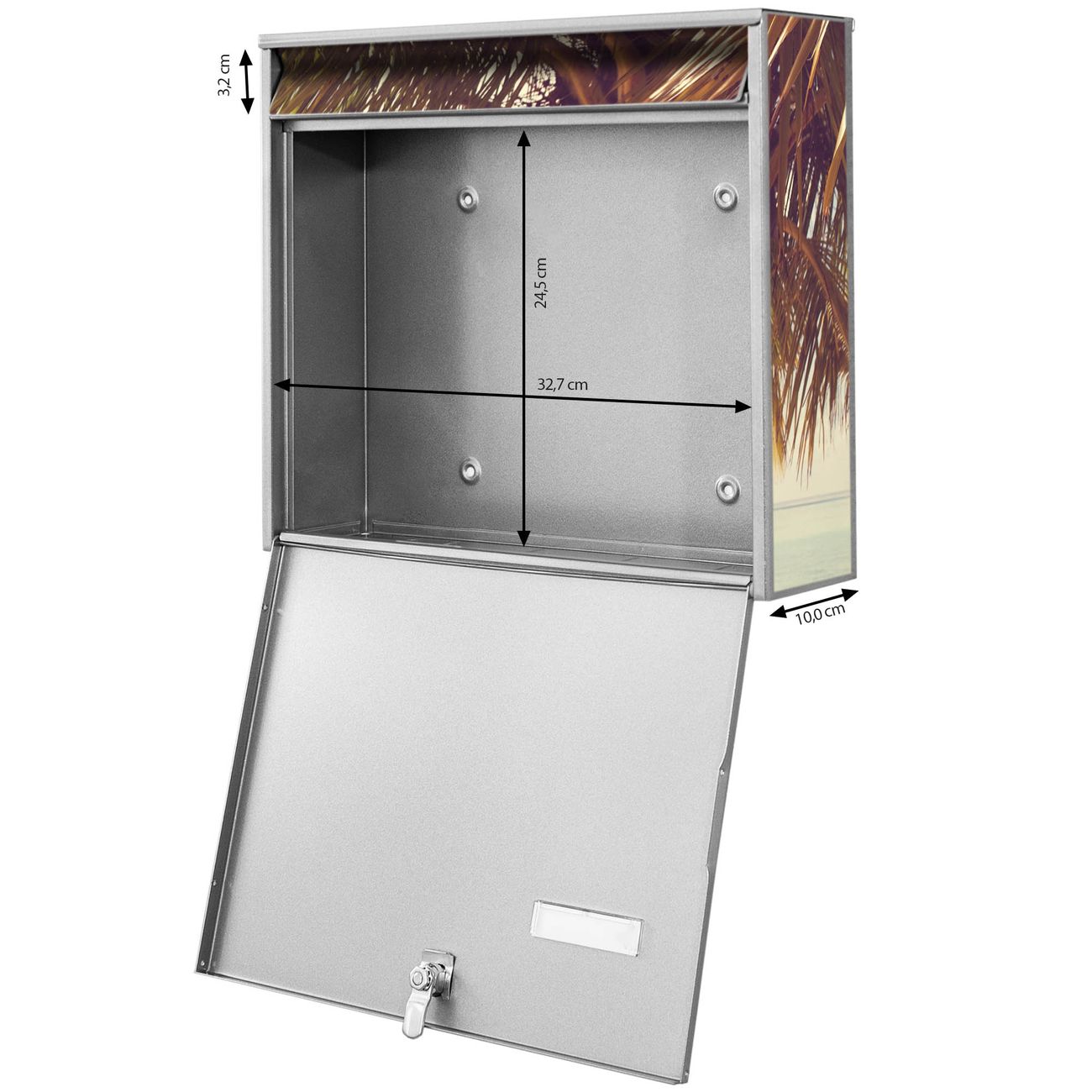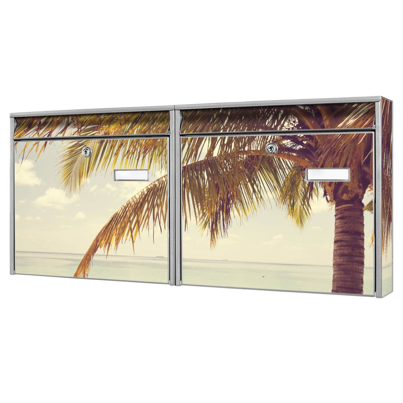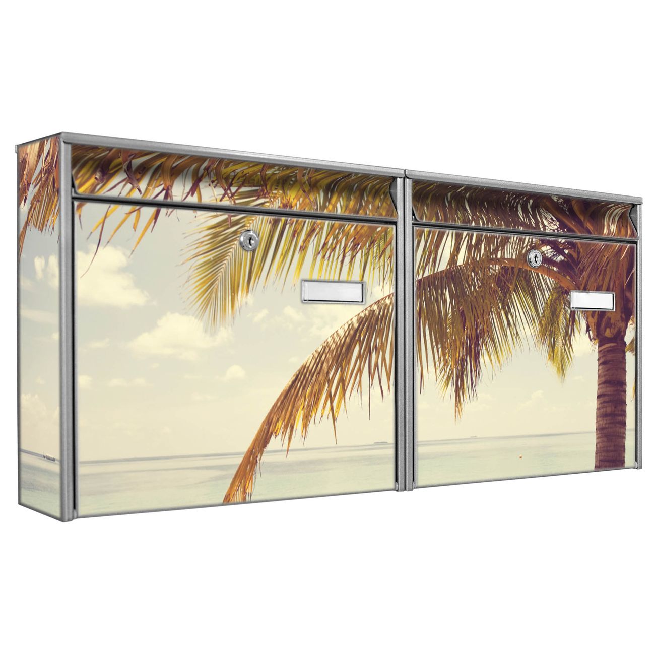 FUNKTION: Die Burg Wächter doppel Briefkastenanlage mit Motiv Südseestrand bietet Ihnen ein großes Fassungsvermögen, sodass auch A4 Sendungen eingeworfen werden können. Das Namensschild lässt sich individuell beschriften. DESIGN: Die 2 Briefkästen mit Südseestrand Motiv haben ein sehr ansprechendes und zeitloses Design. Heben Sie Sich von der tristen grauen Masse ab, ohne auf Funktionalität zu verzichten. Sie erhalten 2 Schlüssel sowie das Montagematerial. DETAILS: Der Doppelbriefkasten besteht aus verzinktem Stahl weiß. Er ist 72,5cm x 32,2cm x 10cm groß. Das Motiv besteht aus einer wetter- und UV-festen Folie, die Ihren Briefkasten zusätzlich vor Kratzern schützt. NUTZEN: Die stabile Bauart sowie die Wetterfestigkeit machen diese doppel Briefkästen zu einem zuverlässigen Begleiter im Alltag. Effektvoll in Reihe gehangen schmückt die Anlage jede Hauswand. BANJADO: Ihr Briefkasten wird in Sachsen in einer kleinen Manufaktur von Hand veredelt. Die Motivfolie ist lösungsmittelfrei und schutzlaminiert für einen langen Halt. Wir legen großen Wert auf die Verbindung von Funktionalität und Design. Sie erhalten Handarbeit aus Sachsen.