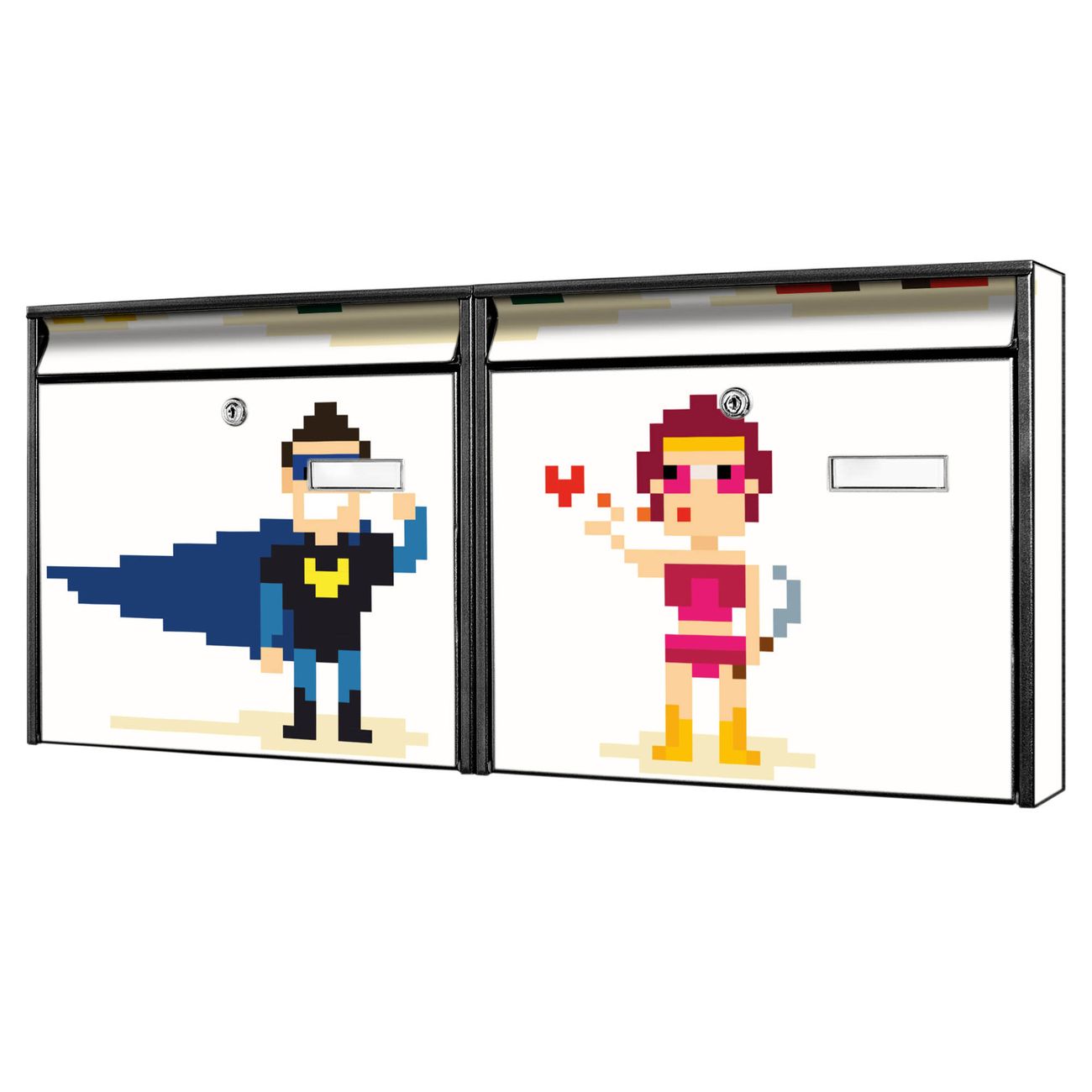 FUNKTION: Die Burg Wächter doppel Briefkastenanlage mit Motiv Superhelden bietet Ihnen ein großes Fassungsvermögen, sodass auch A4 Sendungen eingeworfen werden können. Das Namensschild lässt sich individuell beschriften. DESIGN: Die 2 Briefkästen mit Superhelden Motiv haben ein sehr ansprechendes und zeitloses Design. Heben Sie Sich von der tristen grauen Masse ab, ohne auf Funktionalität zu verzichten. Sie erhalten 2 Schlüssel sowie das Montagematerial. DETAILS: Der Doppelbriefkasten besteht aus verzinktem Stahl weiß. Er ist 72,5cm x 32,2cm x 10cm groß. Das Motiv besteht aus einer wetter- und UV-festen Folie, die Ihren Briefkasten zusätzlich vor Kratzern schützt. NUTZEN: Die stabile Bauart sowie die Wetterfestigkeit machen diese doppel Briefkästen zu einem zuverlässigen Begleiter im Alltag. Effektvoll in Reihe gehangen schmückt die Anlage jede Hauswand. BANJADO: Ihr Briefkasten wird in Sachsen in einer kleinen Manufaktur von Hand veredelt. Die Motivfolie ist lösungsmittelfrei und schutzlaminiert für einen langen Halt. Wir legen großen Wert auf die Verbindung von Funktionalität und Design. Sie erhalten Handarbeit aus Sachsen.