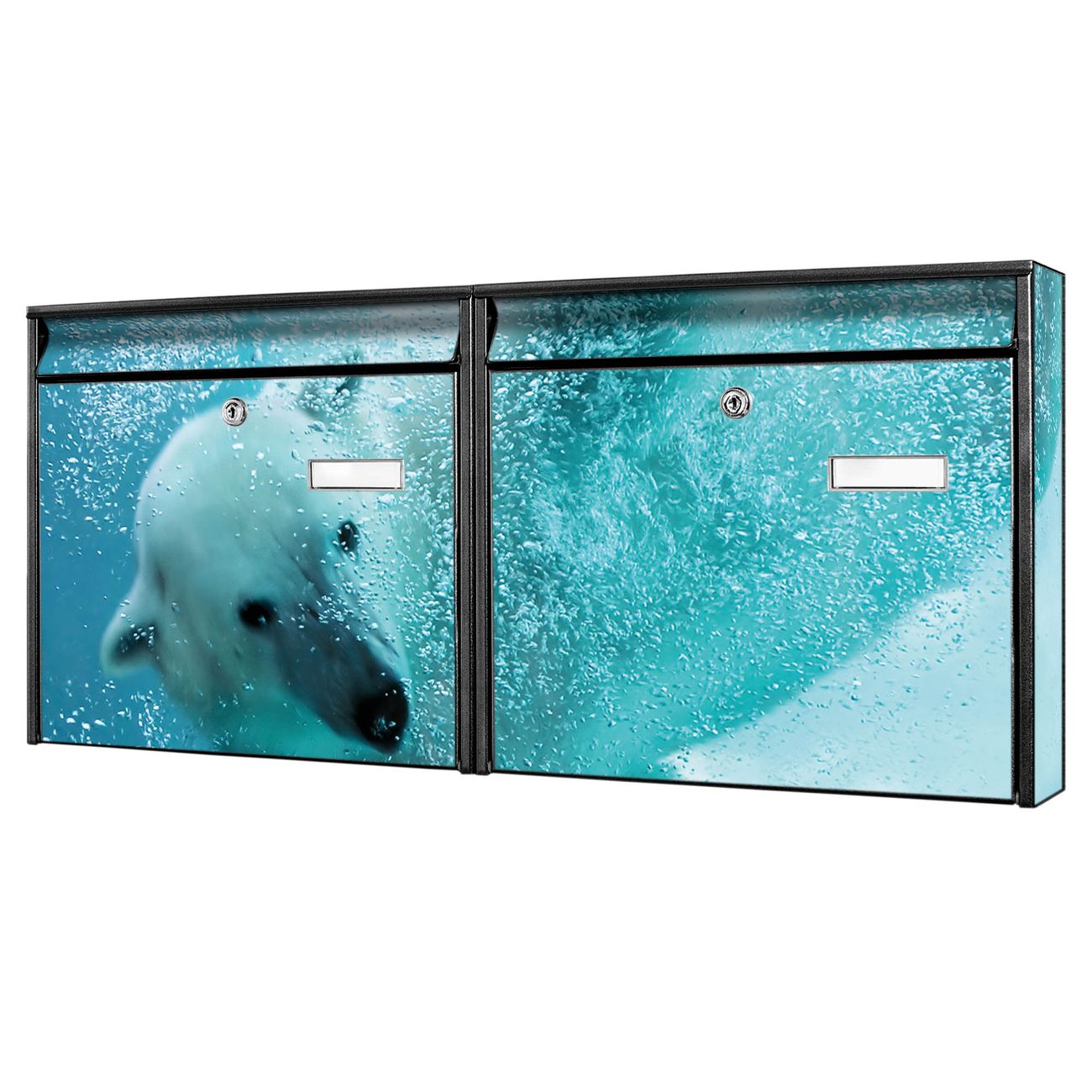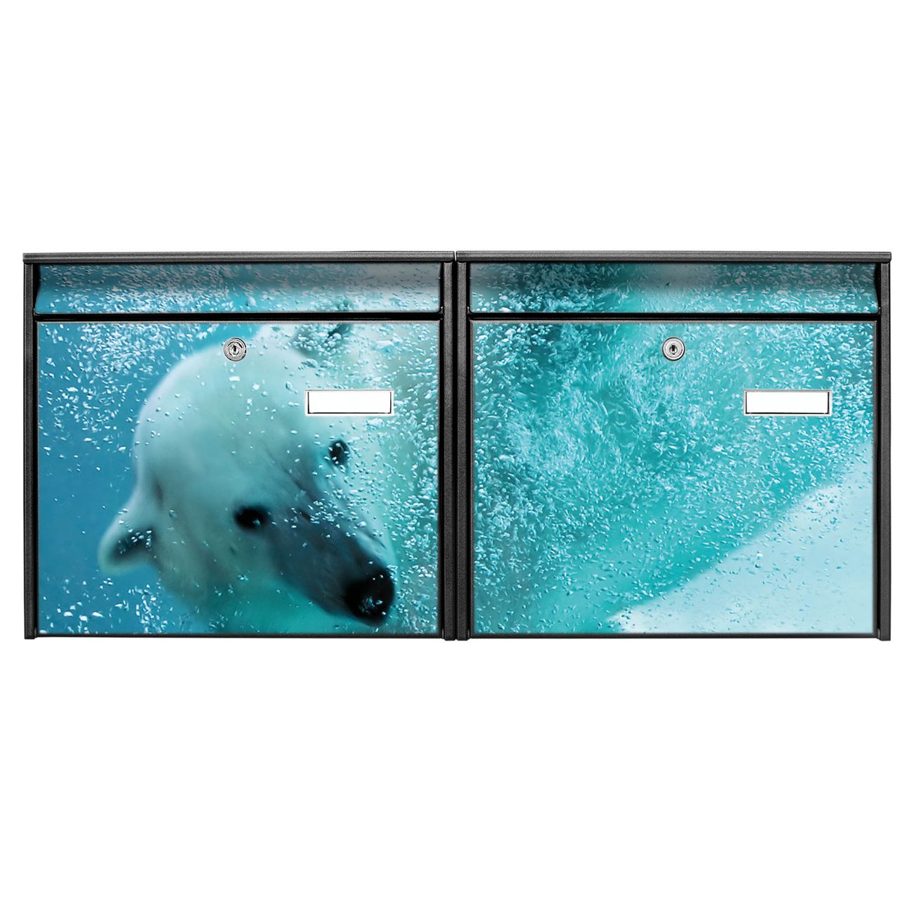 FUNKTION: Die Burg Wächter doppel Briefkastenanlage mit Motiv Tauchender Eisbär bietet Ihnen ein großes Fassungsvermögen, sodass auch A4 Sendungen eingeworfen werden können. Das Namensschild lässt sich individuell beschriften. DESIGN: Die 2 Briefkästen mit Tauchender Eisbär Motiv haben ein sehr ansprechendes und zeitloses Design. Heben Sie Sich von der tristen grauen Masse ab, ohne auf Funktionalität zu verzichten. Sie erhalten 2 Schlüssel sowie das Montagematerial. DETAILS: Der Doppelbriefkasten besteht aus verzinktem Stahl weiß. Er ist 72,5cm x 32,2cm x 10cm groß. Das Motiv besteht aus einer wetter- und UV-festen Folie, die Ihren Briefkasten zusätzlich vor Kratzern schützt. NUTZEN: Die stabile Bauart sowie die Wetterfestigkeit machen diese doppel Briefkästen zu einem zuverlässigen Begleiter im Alltag. Effektvoll in Reihe gehangen schmückt die Anlage jede Hauswand. BANJADO: Ihr Briefkasten wird in Sachsen in einer kleinen Manufaktur von Hand veredelt. Die Motivfolie ist lösungsmittelfrei und schutzlaminiert für einen langen Halt. Wir legen großen Wert auf die Verbindung von Funktionalität und Design. Sie erhalten Handarbeit aus Sachsen.
