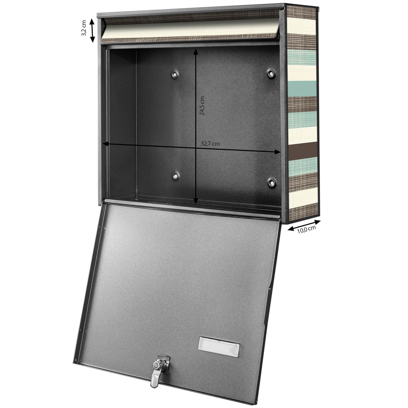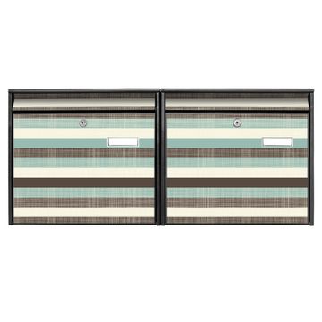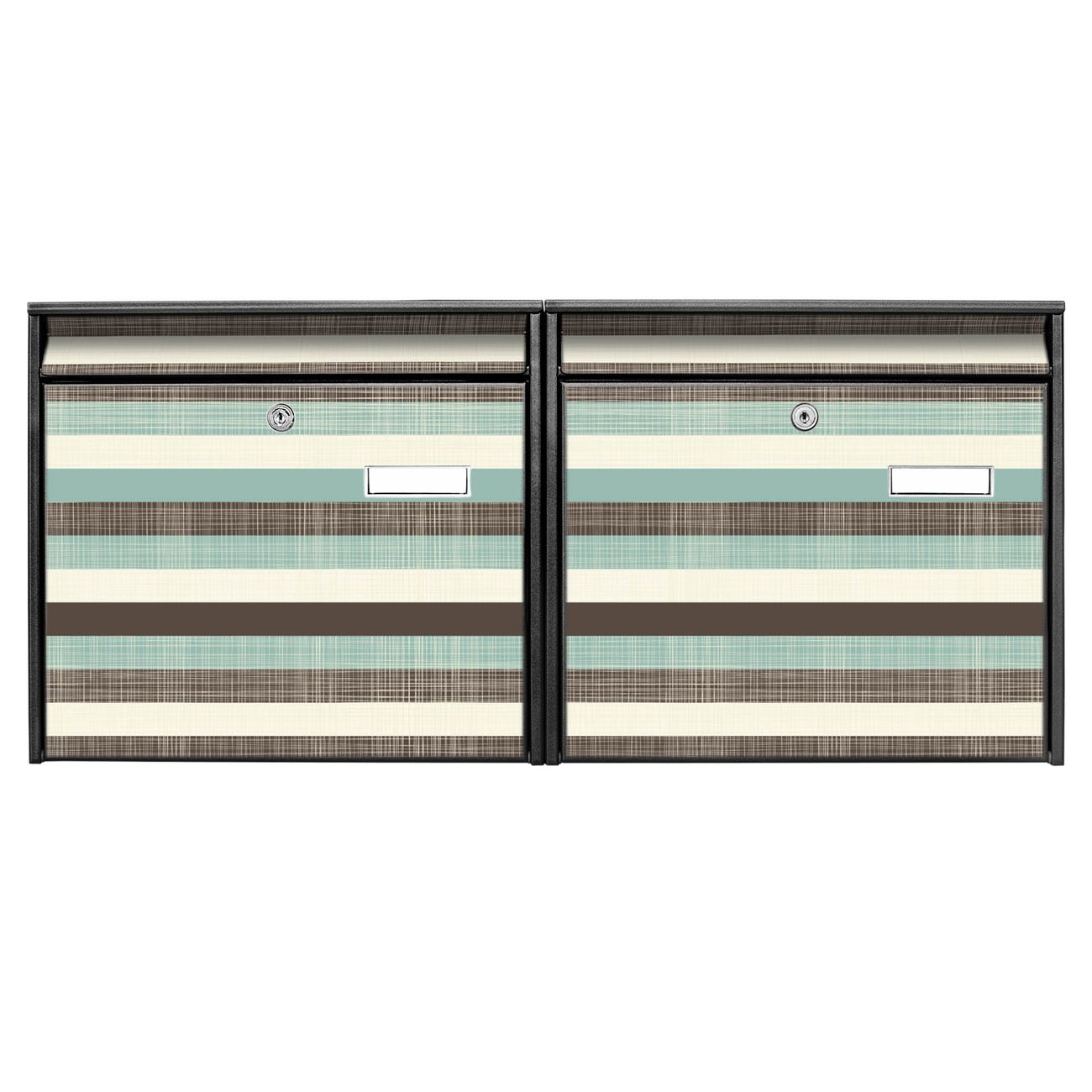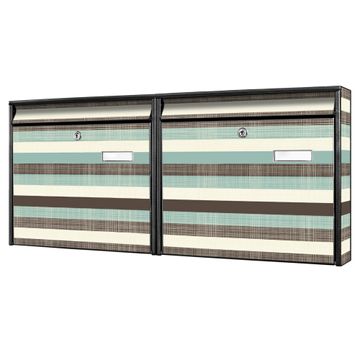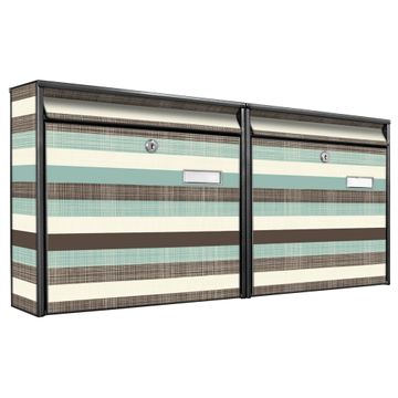 FUNKTION: Die Burg Wächter doppel Briefkastenanlage mit Motiv Textile Streifen bietet Ihnen ein großes Fassungsvermögen, sodass auch A4 Sendungen eingeworfen werden können. Das Namensschild lässt sich individuell beschriften. DESIGN: Die 2 Briefkästen mit Textile Streifen Motiv haben ein sehr ansprechendes und zeitloses Design. Heben Sie Sich von der tristen grauen Masse ab, ohne auf Funktionalität zu verzichten. Sie erhalten 2 Schlüssel sowie das Montagematerial. DETAILS: Der Doppelbriefkasten besteht aus verzinktem Stahl weiß. Er ist 72,5cm x 32,2cm x 10cm groß. Das Motiv besteht aus einer wetter- und UV-festen Folie, die Ihren Briefkasten zusätzlich vor Kratzern schützt. NUTZEN: Die stabile Bauart sowie die Wetterfestigkeit machen diese doppel Briefkästen zu einem zuverlässigen Begleiter im Alltag. Effektvoll in Reihe gehangen schmückt die Anlage jede Hauswand. BANJADO: Ihr Briefkasten wird in Sachsen in einer kleinen Manufaktur von Hand veredelt. Die Motivfolie ist lösungsmittelfrei und schutzlaminiert für einen langen Halt. Wir legen großen Wert auf die Verbindung von Funktionalität und Design. Sie erhalten Handarbeit aus Sachsen.