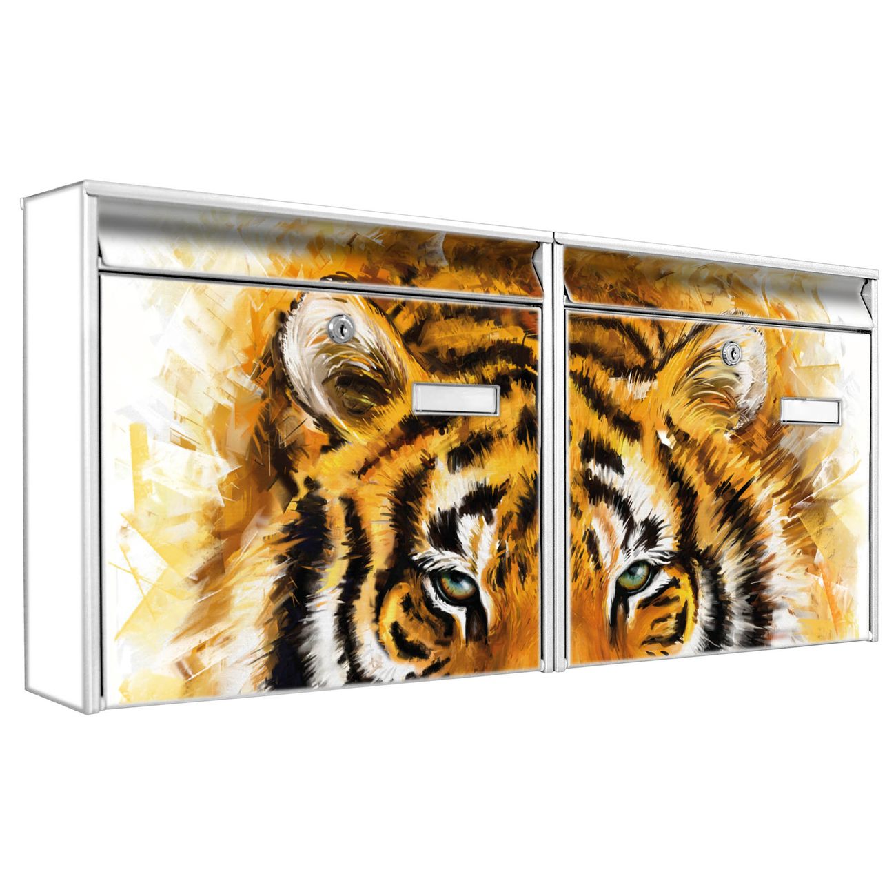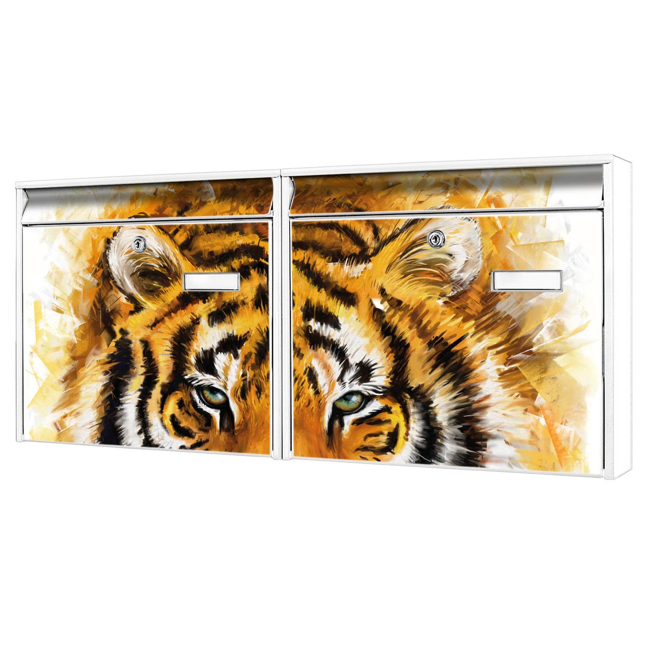 FUNKTION: Die Burg Wächter doppel Briefkastenanlage mit Motiv Tigerkopf bietet Ihnen ein großes Fassungsvermögen, sodass auch A4 Sendungen eingeworfen werden können. Das Namensschild lässt sich individuell beschriften. DESIGN: Die 2 Briefkästen mit Tigerkopf Motiv haben ein sehr ansprechendes und zeitloses Design. Heben Sie Sich von der tristen grauen Masse ab, ohne auf Funktionalität zu verzichten. Sie erhalten 2 Schlüssel sowie das Montagematerial. DETAILS: Der Doppelbriefkasten besteht aus verzinktem Stahl weiß. Er ist 72,5cm x 32,2cm x 10cm groß. Das Motiv besteht aus einer wetter- und UV-festen Folie, die Ihren Briefkasten zusätzlich vor Kratzern schützt. NUTZEN: Die stabile Bauart sowie die Wetterfestigkeit machen diese doppel Briefkästen zu einem zuverlässigen Begleiter im Alltag. Effektvoll in Reihe gehangen schmückt die Anlage jede Hauswand. BANJADO: Ihr Briefkasten wird in Sachsen in einer kleinen Manufaktur von Hand veredelt. Die Motivfolie ist lösungsmittelfrei und schutzlaminiert für einen langen Halt. Wir legen großen Wert auf die Verbindung von Funktionalität und Design. Sie erhalten Handarbeit aus Sachsen.