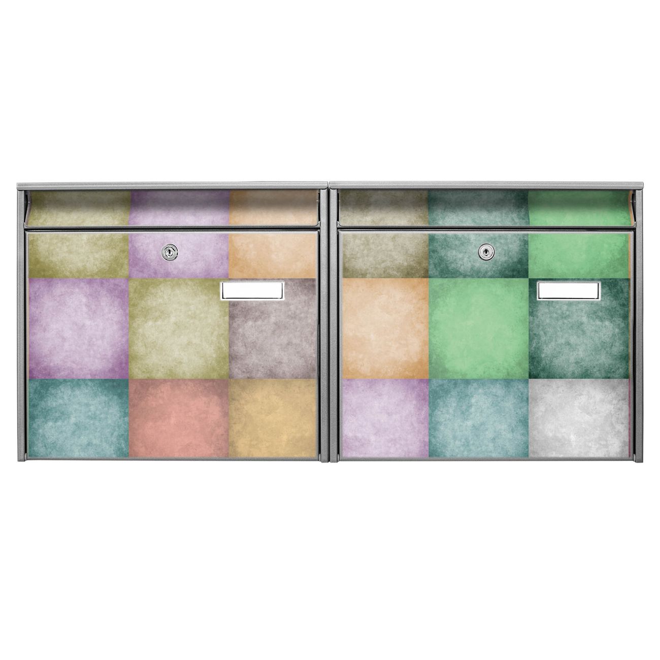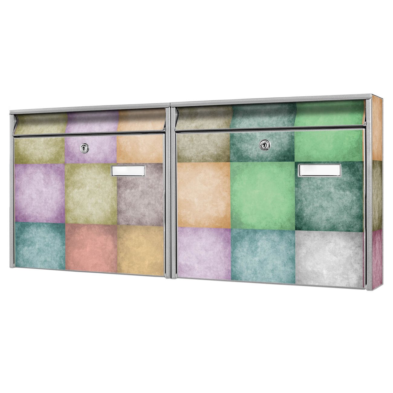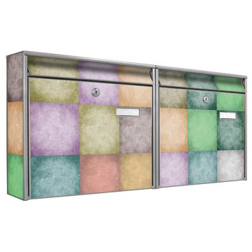 FUNKTION: Die Burg Wächter doppel Briefkastenanlage mit Motiv Verwaschene Quadrate bietet Ihnen ein großes Fassungsvermögen, sodass auch A4 Sendungen eingeworfen werden können. Das Namensschild lässt sich individuell beschriften. DESIGN: Die 2 Briefkästen mit Verwaschene Quadrate Motiv haben ein sehr ansprechendes und zeitloses Design. Heben Sie Sich von der tristen grauen Masse ab, ohne auf Funktionalität zu verzichten. Sie erhalten 2 Schlüssel sowie das Montagematerial. DETAILS: Der Doppelbriefkasten besteht aus verzinktem Stahl weiß. Er ist 72,5cm x 32,2cm x 10cm groß. Das Motiv besteht aus einer wetter- und UV-festen Folie, die Ihren Briefkasten zusätzlich vor Kratzern schützt. NUTZEN: Die stabile Bauart sowie die Wetterfestigkeit machen diese doppel Briefkästen zu einem zuverlässigen Begleiter im Alltag. Effektvoll in Reihe gehangen schmückt die Anlage jede Hauswand. BANJADO: Ihr Briefkasten wird in Sachsen in einer kleinen Manufaktur von Hand veredelt. Die Motivfolie ist lösungsmittelfrei und schutzlaminiert für einen langen Halt. Wir legen großen Wert auf die Verbindung von Funktionalität und Design. Sie erhalten Handarbeit aus Sachsen.