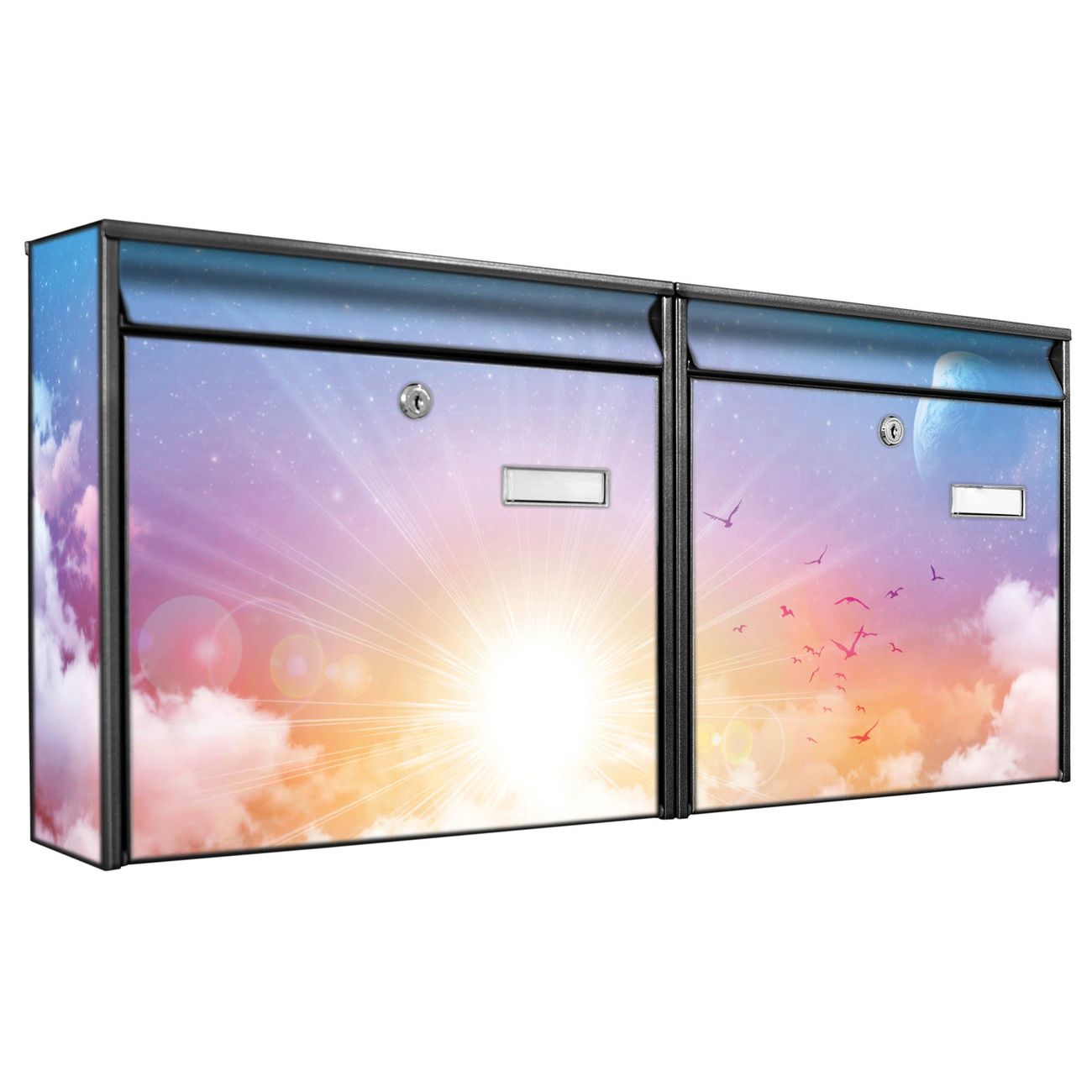 Doppelbriefkasten quer Vögel am Himmel