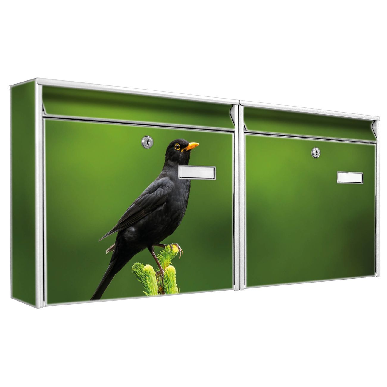 Doppelbriefkasten quer Vogel auf Tannenzweig