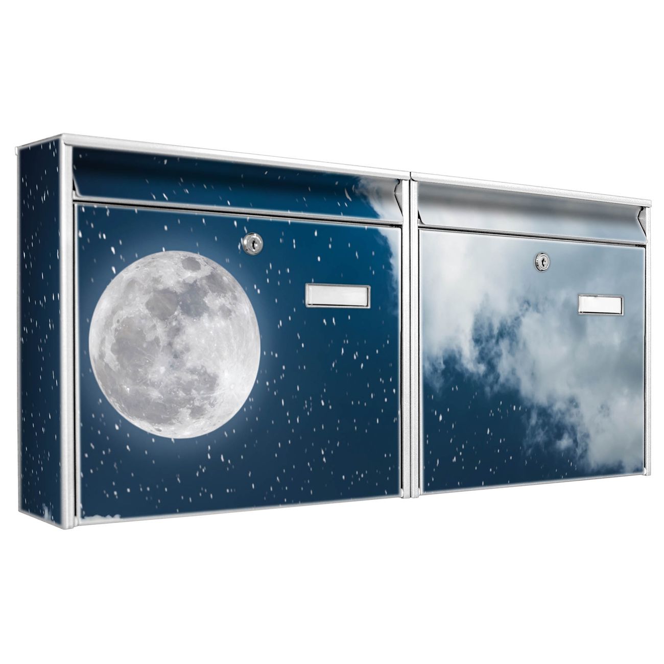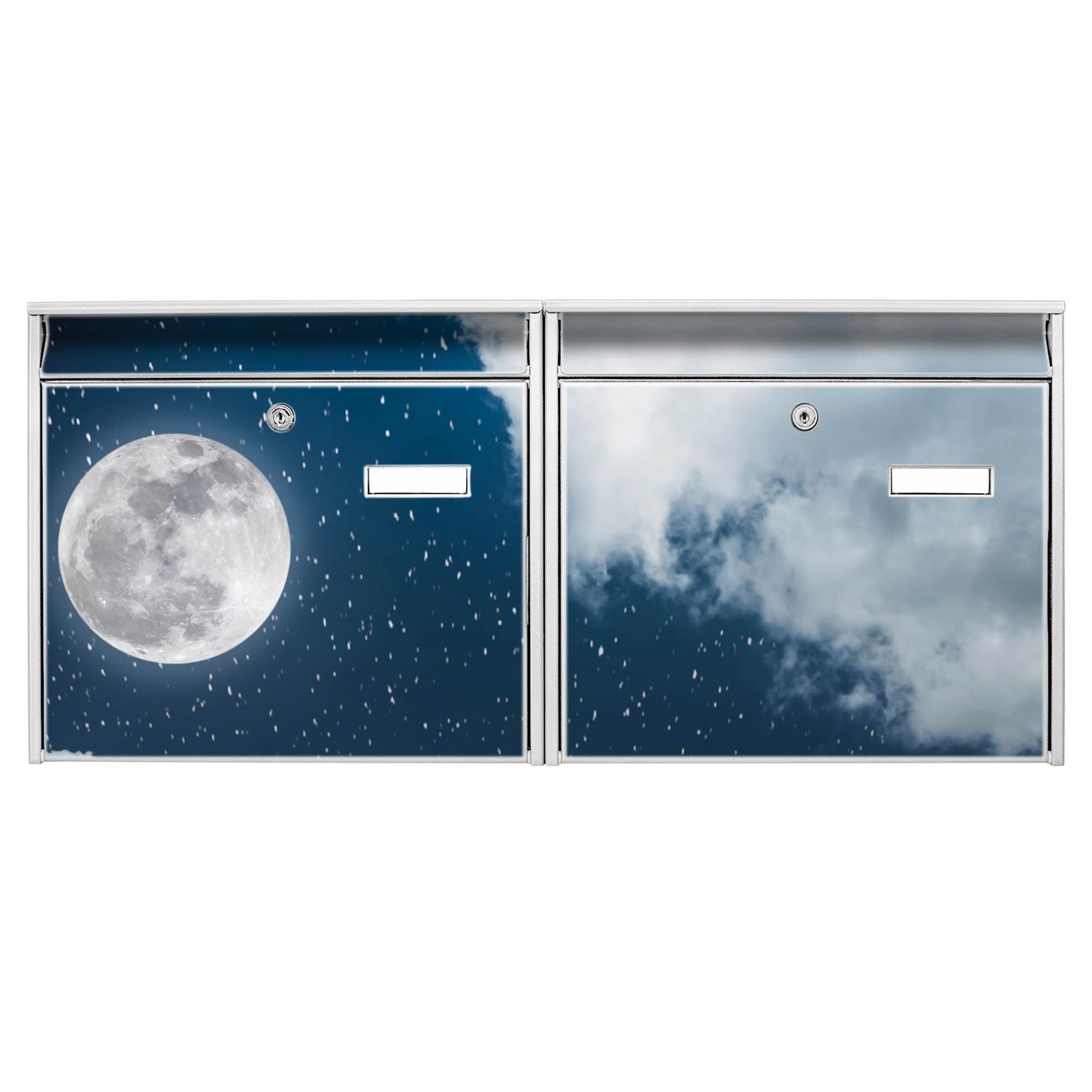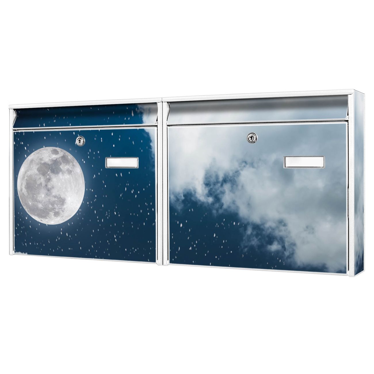 FUNKTION: Die Burg Wächter doppel Briefkastenanlage mit Motiv Vollmond 3 bietet Ihnen ein großes Fassungsvermögen, sodass auch A4 Sendungen eingeworfen werden können. Das Namensschild lässt sich individuell beschriften. DESIGN: Die 2 Briefkästen mit Vollmond 3 Motiv haben ein sehr ansprechendes und zeitloses Design. Heben Sie Sich von der tristen grauen Masse ab, ohne auf Funktionalität zu verzichten. Sie erhalten 2 Schlüssel sowie das Montagematerial. DETAILS: Der Doppelbriefkasten besteht aus verzinktem Stahl weiß. Er ist 72,5cm x 32,2cm x 10cm groß. Das Motiv besteht aus einer wetter- und UV-festen Folie, die Ihren Briefkasten zusätzlich vor Kratzern schützt. NUTZEN: Die stabile Bauart sowie die Wetterfestigkeit machen diese doppel Briefkästen zu einem zuverlässigen Begleiter im Alltag. Effektvoll in Reihe gehangen schmückt die Anlage jede Hauswand. BANJADO: Ihr Briefkasten wird in Sachsen in einer kleinen Manufaktur von Hand veredelt. Die Motivfolie ist lösungsmittelfrei und schutzlaminiert für einen langen Halt. Wir legen großen Wert auf die Verbindung von Funktionalität und Design. Sie erhalten Handarbeit aus Sachsen.