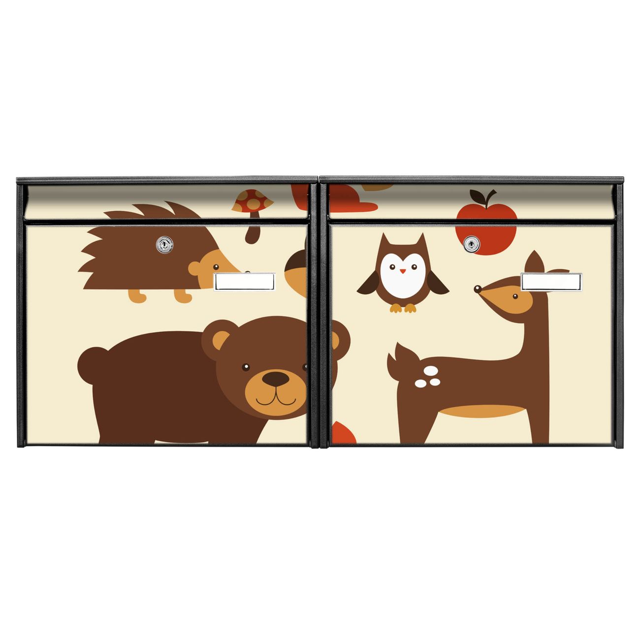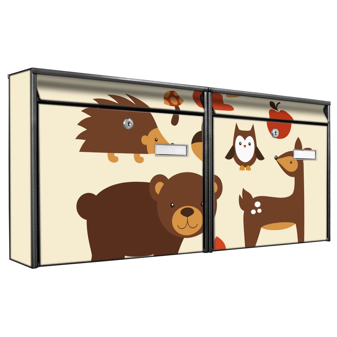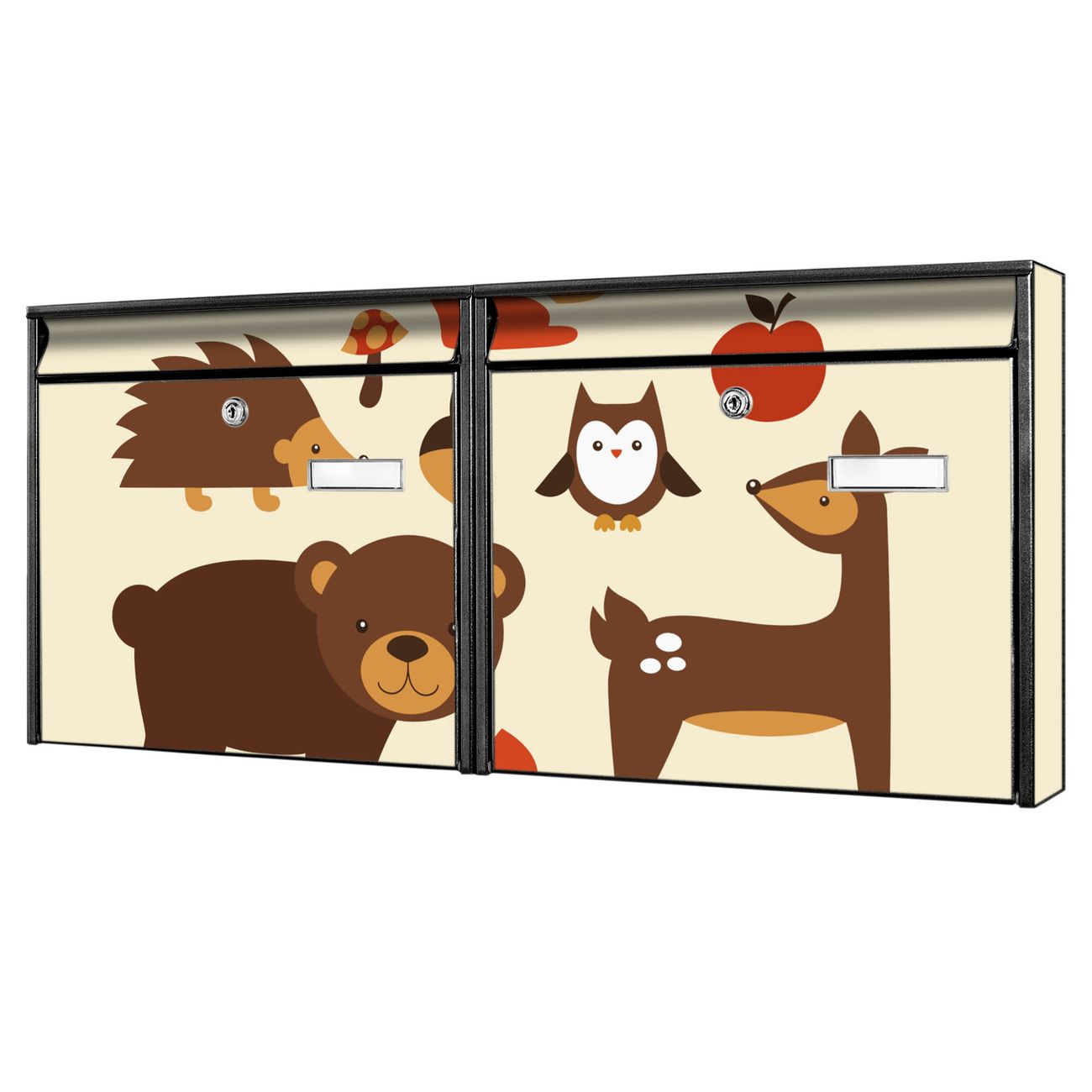 FUNKTION: Die Burg Wächter doppel Briefkastenanlage mit Motiv Waldfreunde bietet Ihnen ein großes Fassungsvermögen, sodass auch A4 Sendungen eingeworfen werden können. Das Namensschild lässt sich individuell beschriften. DESIGN: Die 2 Briefkästen mit Waldfreunde Motiv haben ein sehr ansprechendes und zeitloses Design. Heben Sie Sich von der tristen grauen Masse ab, ohne auf Funktionalität zu verzichten. Sie erhalten 2 Schlüssel sowie das Montagematerial. DETAILS: Der Doppelbriefkasten besteht aus verzinktem Stahl weiß. Er ist 72,5cm x 32,2cm x 10cm groß. Das Motiv besteht aus einer wetter- und UV-festen Folie, die Ihren Briefkasten zusätzlich vor Kratzern schützt. NUTZEN: Die stabile Bauart sowie die Wetterfestigkeit machen diese doppel Briefkästen zu einem zuverlässigen Begleiter im Alltag. Effektvoll in Reihe gehangen schmückt die Anlage jede Hauswand. BANJADO: Ihr Briefkasten wird in Sachsen in einer kleinen Manufaktur von Hand veredelt. Die Motivfolie ist lösungsmittelfrei und schutzlaminiert für einen langen Halt. Wir legen großen Wert auf die Verbindung von Funktionalität und Design. Sie erhalten Handarbeit aus Sachsen.