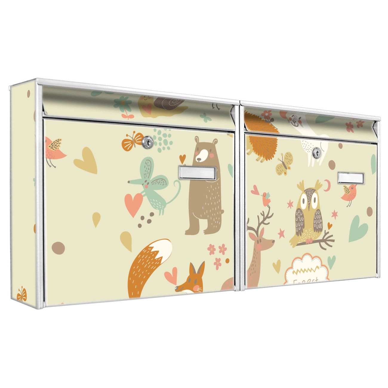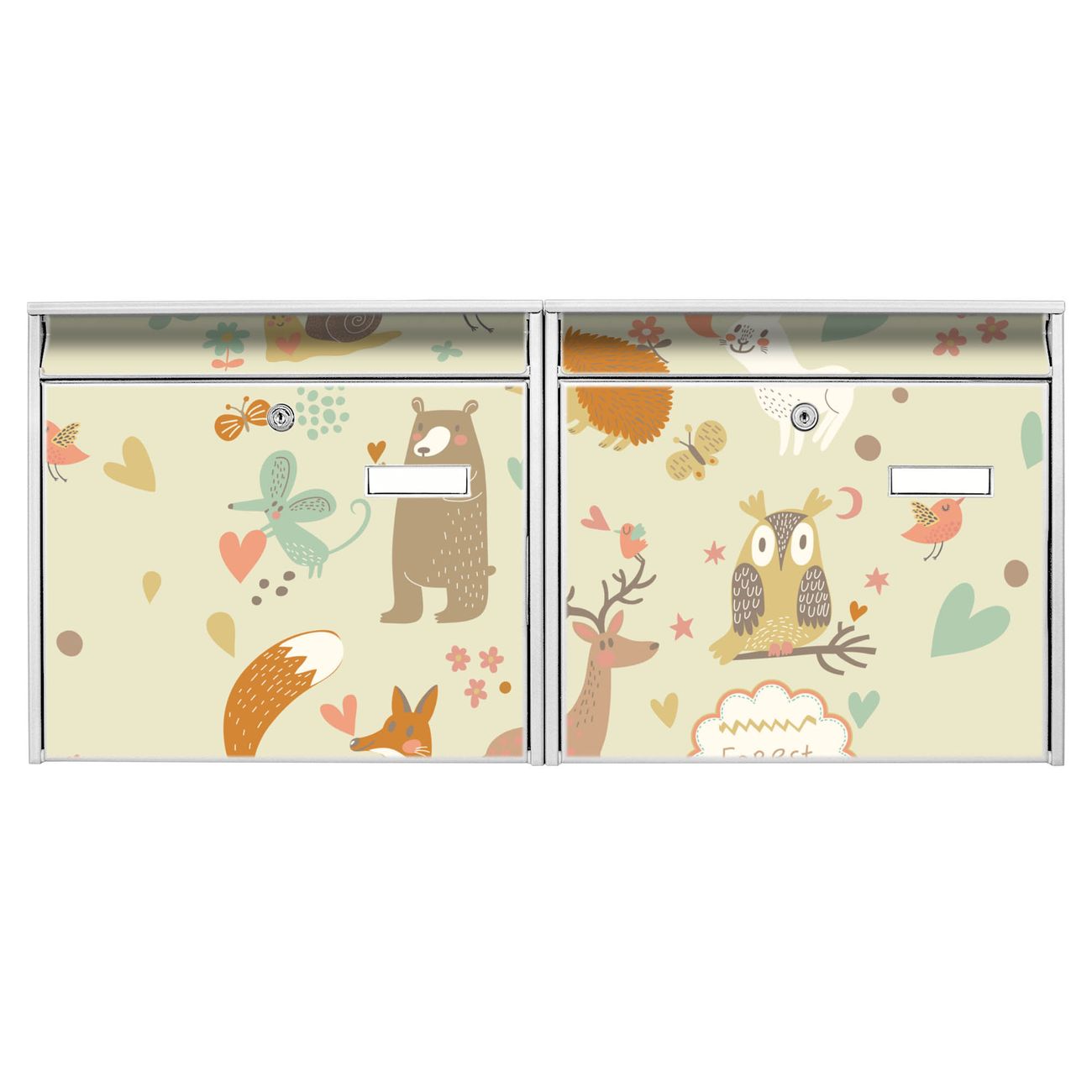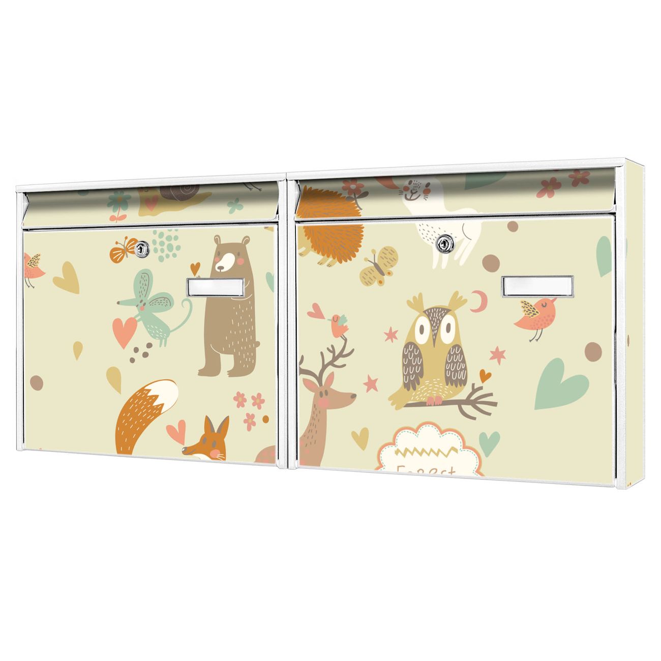 FUNKTION: Die Burg Wächter doppel Briefkastenanlage mit Motiv Waldtiere bietet Ihnen ein großes Fassungsvermögen, sodass auch A4 Sendungen eingeworfen werden können. Das Namensschild lässt sich individuell beschriften. DESIGN: Die 2 Briefkästen mit Waldtiere Motiv haben ein sehr ansprechendes und zeitloses Design. Heben Sie Sich von der tristen grauen Masse ab, ohne auf Funktionalität zu verzichten. Sie erhalten 2 Schlüssel sowie das Montagematerial. DETAILS: Der Doppelbriefkasten besteht aus verzinktem Stahl weiß. Er ist 72,5cm x 32,2cm x 10cm groß. Das Motiv besteht aus einer wetter- und UV-festen Folie, die Ihren Briefkasten zusätzlich vor Kratzern schützt. NUTZEN: Die stabile Bauart sowie die Wetterfestigkeit machen diese doppel Briefkästen zu einem zuverlässigen Begleiter im Alltag. Effektvoll in Reihe gehangen schmückt die Anlage jede Hauswand. BANJADO: Ihr Briefkasten wird in Sachsen in einer kleinen Manufaktur von Hand veredelt. Die Motivfolie ist lösungsmittelfrei und schutzlaminiert für einen langen Halt. Wir legen großen Wert auf die Verbindung von Funktionalität und Design. Sie erhalten Handarbeit aus Sachsen.