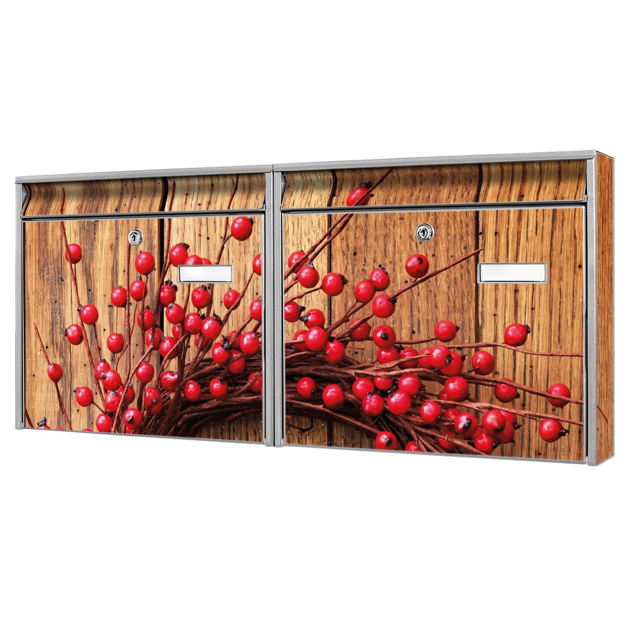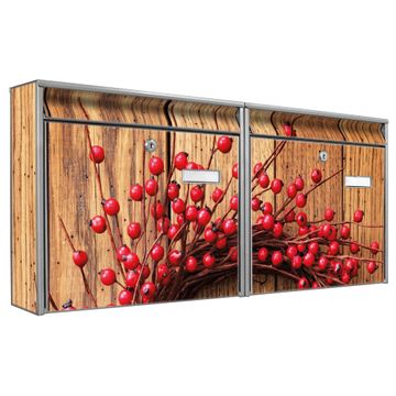FUNKTION: Die Burg Wächter doppel Briefkastenanlage mit Motiv Weihnachtskranz bietet Ihnen ein großes Fassungsvermögen, sodass auch A4 Sendungen eingeworfen werden können. Das Namensschild lässt sich individuell beschriften. DESIGN: Die 2 Briefkästen mit Weihnachtskranz Motiv haben ein sehr ansprechendes und zeitloses Design. Heben Sie Sich von der tristen grauen Masse ab, ohne auf Funktionalität zu verzichten. Sie erhalten 2 Schlüssel sowie das Montagematerial. DETAILS: Der Doppelbriefkasten besteht aus verzinktem Stahl weiß. Er ist 72,5cm x 32,2cm x 10cm groß. Das Motiv besteht aus einer wetter- und UV-festen Folie, die Ihren Briefkasten zusätzlich vor Kratzern schützt. NUTZEN: Die stabile Bauart sowie die Wetterfestigkeit machen diese doppel Briefkästen zu einem zuverlässigen Begleiter im Alltag. Effektvoll in Reihe gehangen schmückt die Anlage jede Hauswand. BANJADO: Ihr Briefkasten wird in Sachsen in einer kleinen Manufaktur von Hand veredelt. Die Motivfolie ist lösungsmittelfrei und schutzlaminiert für einen langen Halt. Wir legen großen Wert auf die Verbindung von Funktionalität und Design. Sie erhalten Handarbeit aus Sachsen.