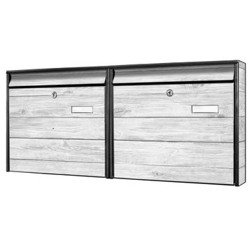 FUNKTION: Die Burg Wächter doppel Briefkastenanlage mit Motiv Weiß Gebeizt bietet Ihnen ein großes Fassungsvermögen, sodass auch A4 Sendungen eingeworfen werden können. Das Namensschild lässt sich individuell beschriften. DESIGN: Die 2 Briefkästen mit Weiß Gebeizt Motiv haben ein sehr ansprechendes und zeitloses Design. Heben Sie Sich von der tristen grauen Masse ab, ohne auf Funktionalität zu verzichten. Sie erhalten 2 Schlüssel sowie das Montagematerial. DETAILS: Der Doppelbriefkasten besteht aus verzinktem Stahl weiß. Er ist 72,5cm x 32,2cm x 10cm groß. Das Motiv besteht aus einer wetter- und UV-festen Folie, die Ihren Briefkasten zusätzlich vor Kratzern schützt. NUTZEN: Die stabile Bauart sowie die Wetterfestigkeit machen diese doppel Briefkästen zu einem zuverlässigen Begleiter im Alltag. Effektvoll in Reihe gehangen schmückt die Anlage jede Hauswand. BANJADO: Ihr Briefkasten wird in Sachsen in einer kleinen Manufaktur von Hand veredelt. Die Motivfolie ist lösungsmittelfrei und schutzlaminiert für einen langen Halt. Wir legen großen Wert auf die Verbindung von Funktionalität und Design. Sie erhalten Handarbeit aus Sachsen.