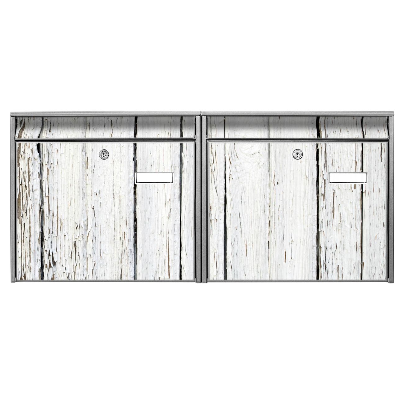 FUNKTION: Die Burg Wächter doppel Briefkastenanlage mit Motiv Weißer Bretterzaun bietet Ihnen ein großes Fassungsvermögen, sodass auch A4 Sendungen eingeworfen werden können. Das Namensschild lässt sich individuell beschriften. DESIGN: Die 2 Briefkästen mit Weißer Bretterzaun Motiv haben ein sehr ansprechendes und zeitloses Design. Heben Sie Sich von der tristen grauen Masse ab, ohne auf Funktionalität zu verzichten. Sie erhalten 2 Schlüssel sowie das Montagematerial. DETAILS: Der Doppelbriefkasten besteht aus verzinktem Stahl weiß. Er ist 72,5cm x 32,2cm x 10cm groß. Das Motiv besteht aus einer wetter- und UV-festen Folie, die Ihren Briefkasten zusätzlich vor Kratzern schützt. NUTZEN: Die stabile Bauart sowie die Wetterfestigkeit machen diese doppel Briefkästen zu einem zuverlässigen Begleiter im Alltag. Effektvoll in Reihe gehangen schmückt die Anlage jede Hauswand. BANJADO: Ihr Briefkasten wird in Sachsen in einer kleinen Manufaktur von Hand veredelt. Die Motivfolie ist lösungsmittelfrei und schutzlaminiert für einen langen Halt. Wir legen großen Wert auf die Verbindung von Funktionalität und Design. Sie erhalten Handarbeit aus Sachsen.