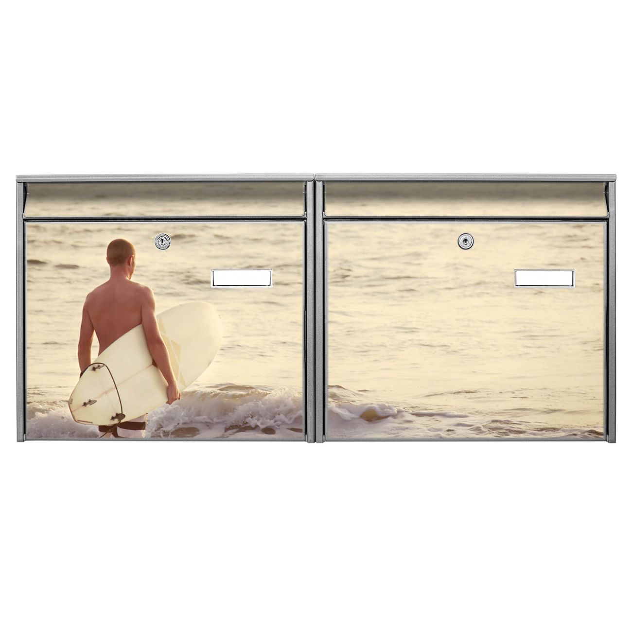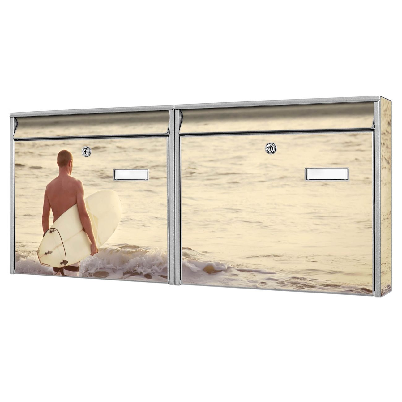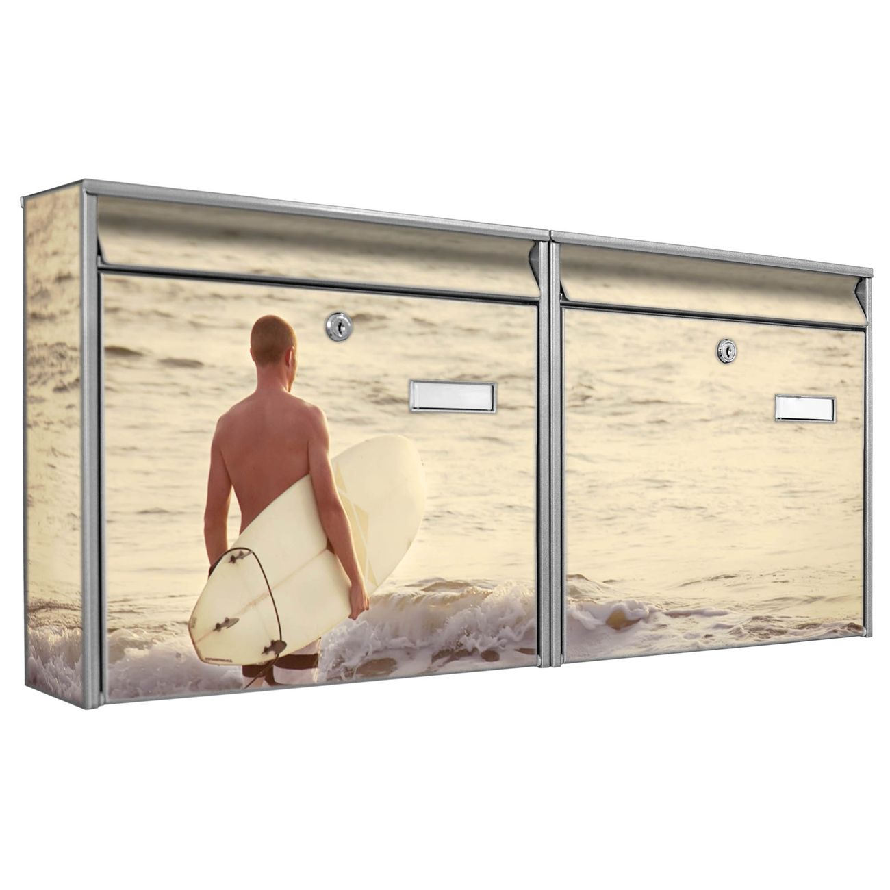 FUNKTION: Die Burg Wächter doppel Briefkastenanlage mit Motiv Wellenreiten Gehen 2 bietet Ihnen ein großes Fassungsvermögen, sodass auch A4 Sendungen eingeworfen werden können. Das Namensschild lässt sich individuell beschriften. DESIGN: Die 2 Briefkästen mit Wellenreiten Gehen 2 Motiv haben ein sehr ansprechendes und zeitloses Design. Heben Sie Sich von der tristen grauen Masse ab, ohne auf Funktionalität zu verzichten. Sie erhalten 2 Schlüssel sowie das Montagematerial. DETAILS: Der Doppelbriefkasten besteht aus verzinktem Stahl weiß. Er ist 72,5cm x 32,2cm x 10cm groß. Das Motiv besteht aus einer wetter- und UV-festen Folie, die Ihren Briefkasten zusätzlich vor Kratzern schützt. NUTZEN: Die stabile Bauart sowie die Wetterfestigkeit machen diese doppel Briefkästen zu einem zuverlässigen Begleiter im Alltag. Effektvoll in Reihe gehangen schmückt die Anlage jede Hauswand. BANJADO: Ihr Briefkasten wird in Sachsen in einer kleinen Manufaktur von Hand veredelt. Die Motivfolie ist lösungsmittelfrei und schutzlaminiert für einen langen Halt. Wir legen großen Wert auf die Verbindung von Funktionalität und Design. Sie erhalten Handarbeit aus Sachsen.