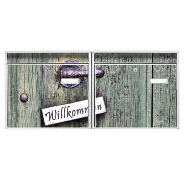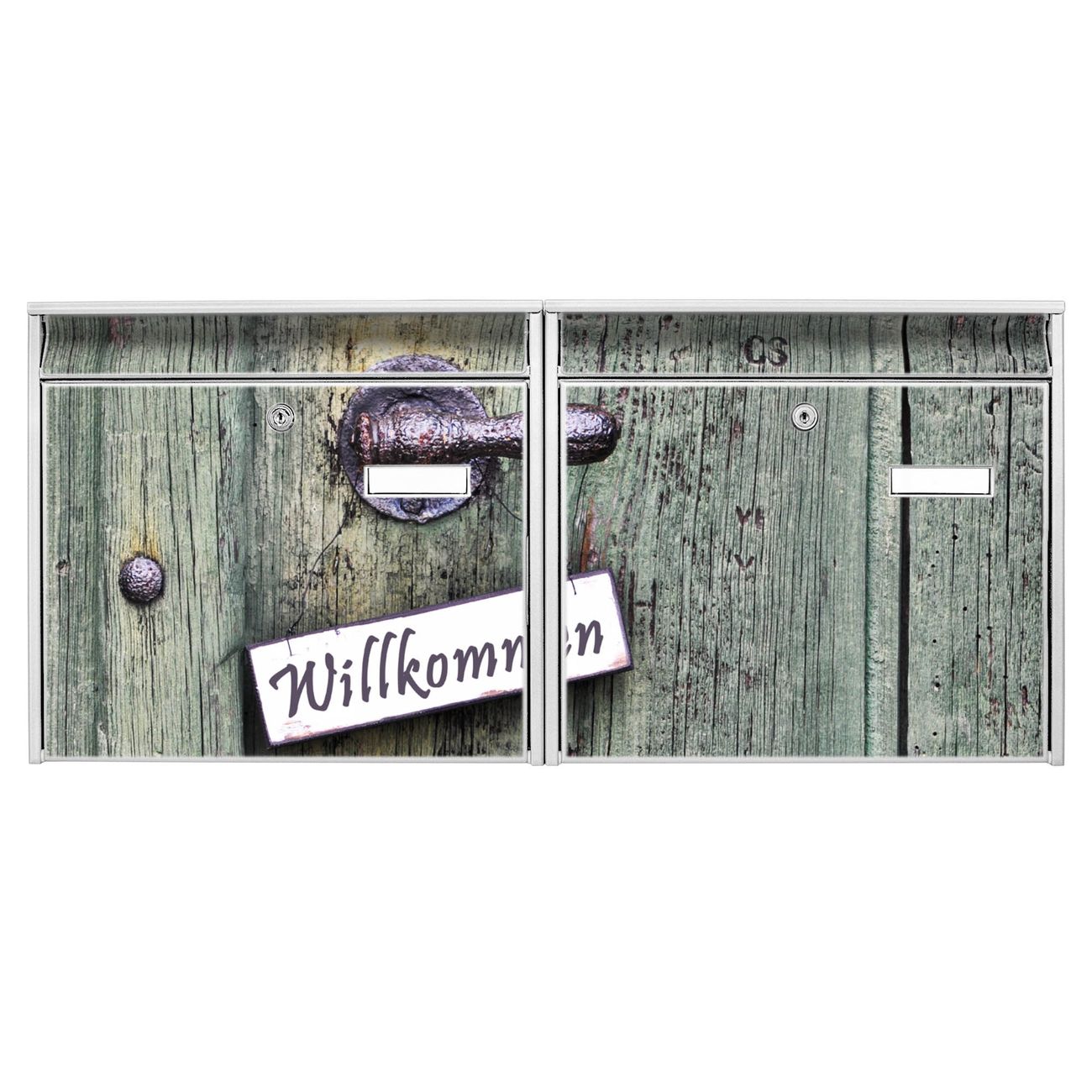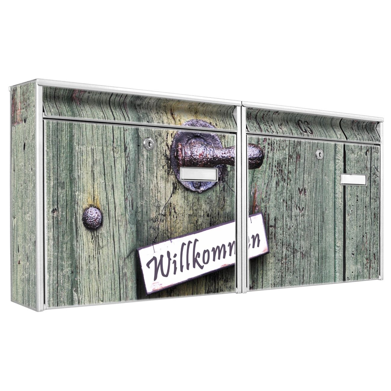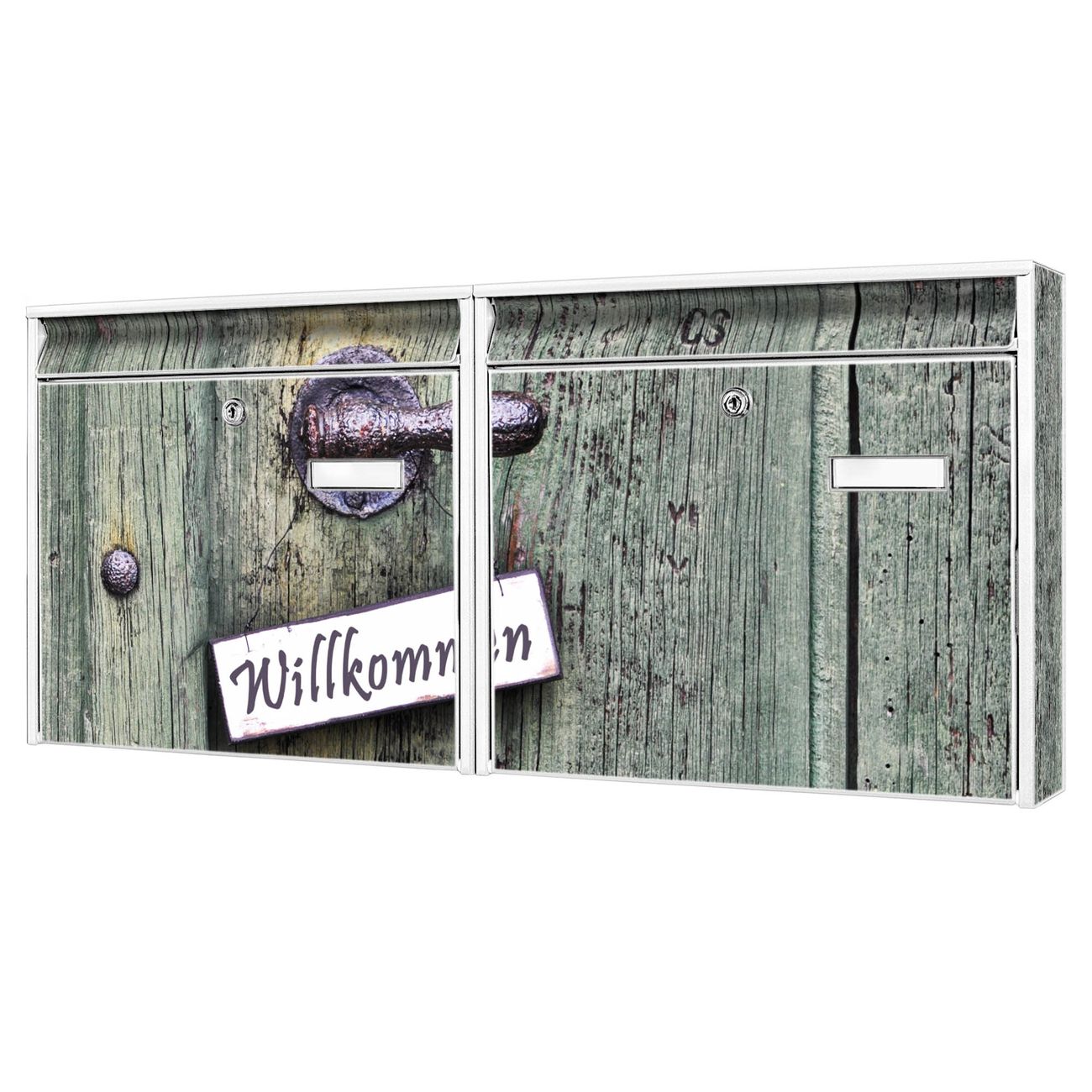 FUNKTION: Die Burg Wächter doppel Briefkastenanlage mit Motiv Willkommen bietet Ihnen ein großes Fassungsvermögen, sodass auch A4 Sendungen eingeworfen werden können. Das Namensschild lässt sich individuell beschriften. DESIGN: Die 2 Briefkästen mit Willkommen Motiv haben ein sehr ansprechendes und zeitloses Design. Heben Sie Sich von der tristen grauen Masse ab, ohne auf Funktionalität zu verzichten. Sie erhalten 2 Schlüssel sowie das Montagematerial. DETAILS: Der Doppelbriefkasten besteht aus verzinktem Stahl weiß. Er ist 72,5cm x 32,2cm x 10cm groß. Das Motiv besteht aus einer wetter- und UV-festen Folie, die Ihren Briefkasten zusätzlich vor Kratzern schützt. NUTZEN: Die stabile Bauart sowie die Wetterfestigkeit machen diese doppel Briefkästen zu einem zuverlässigen Begleiter im Alltag. Effektvoll in Reihe gehangen schmückt die Anlage jede Hauswand. BANJADO: Ihr Briefkasten wird in Sachsen in einer kleinen Manufaktur von Hand veredelt. Die Motivfolie ist lösungsmittelfrei und schutzlaminiert für einen langen Halt. Wir legen großen Wert auf die Verbindung von Funktionalität und Design. Sie erhalten Handarbeit aus Sachsen.