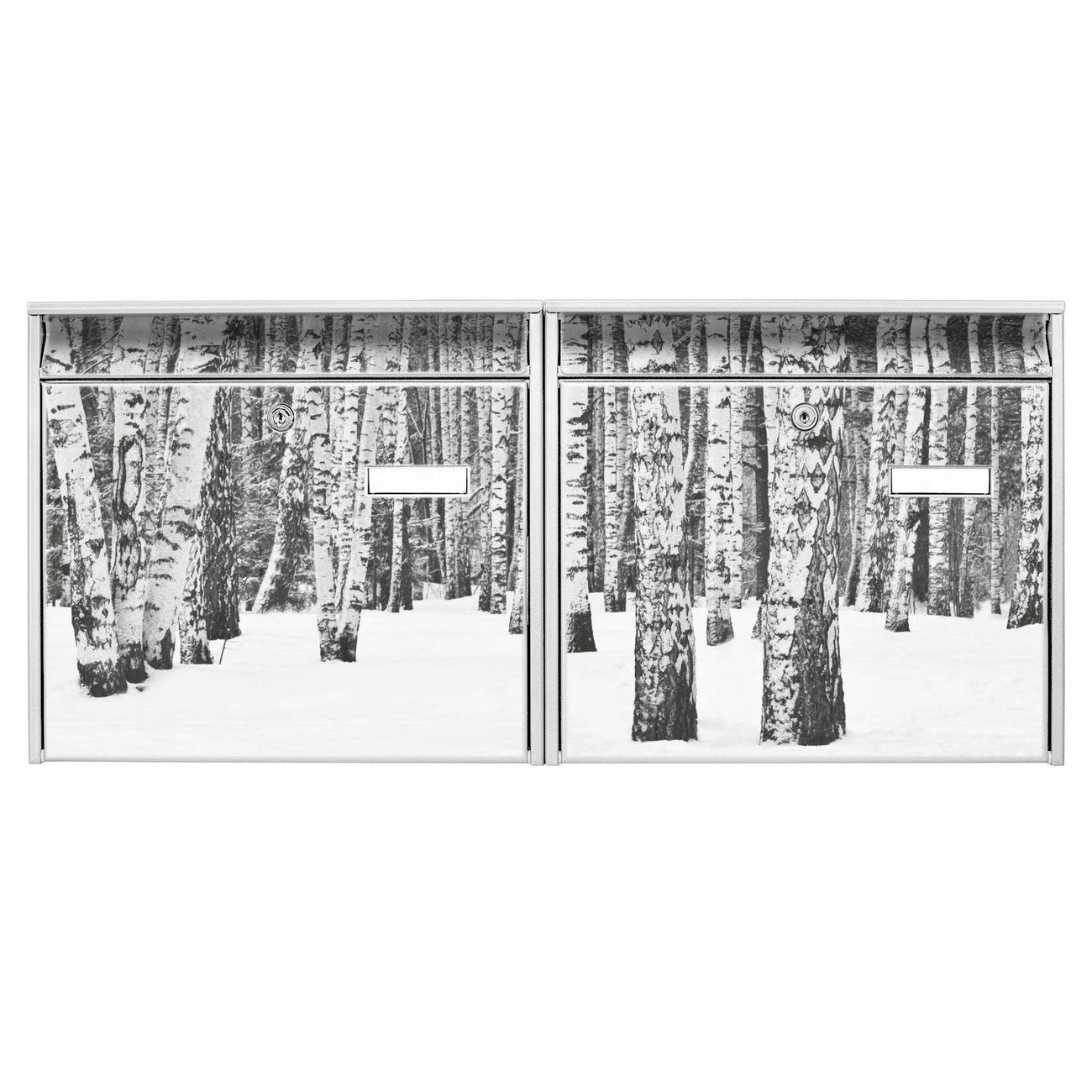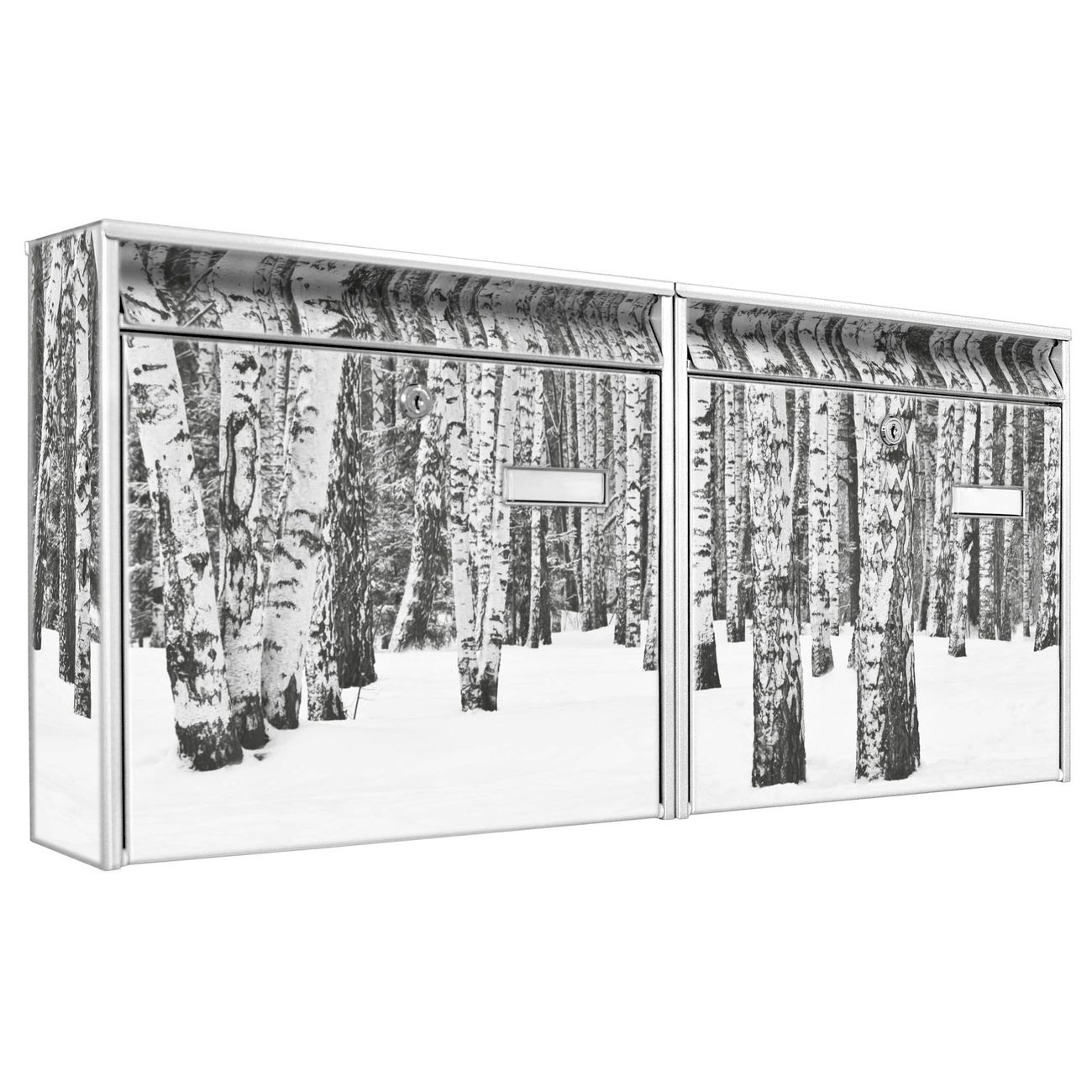 Doppelbriefkasten quer Winterlicher Birkenwald