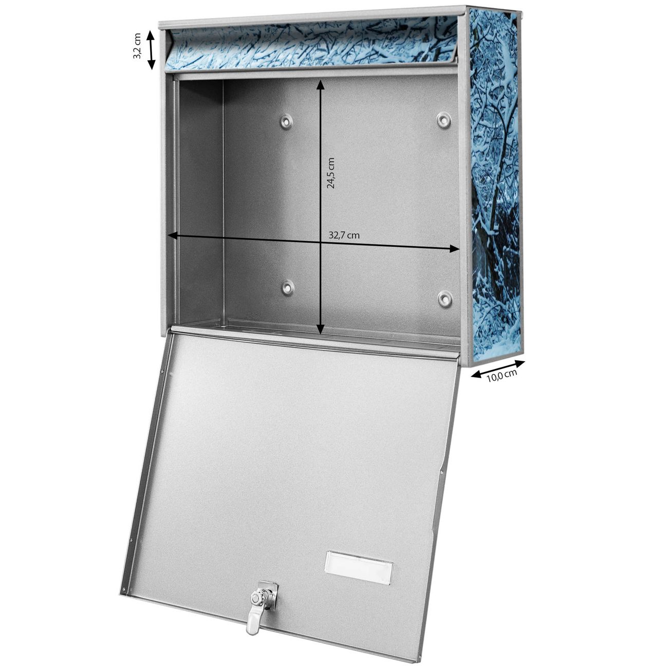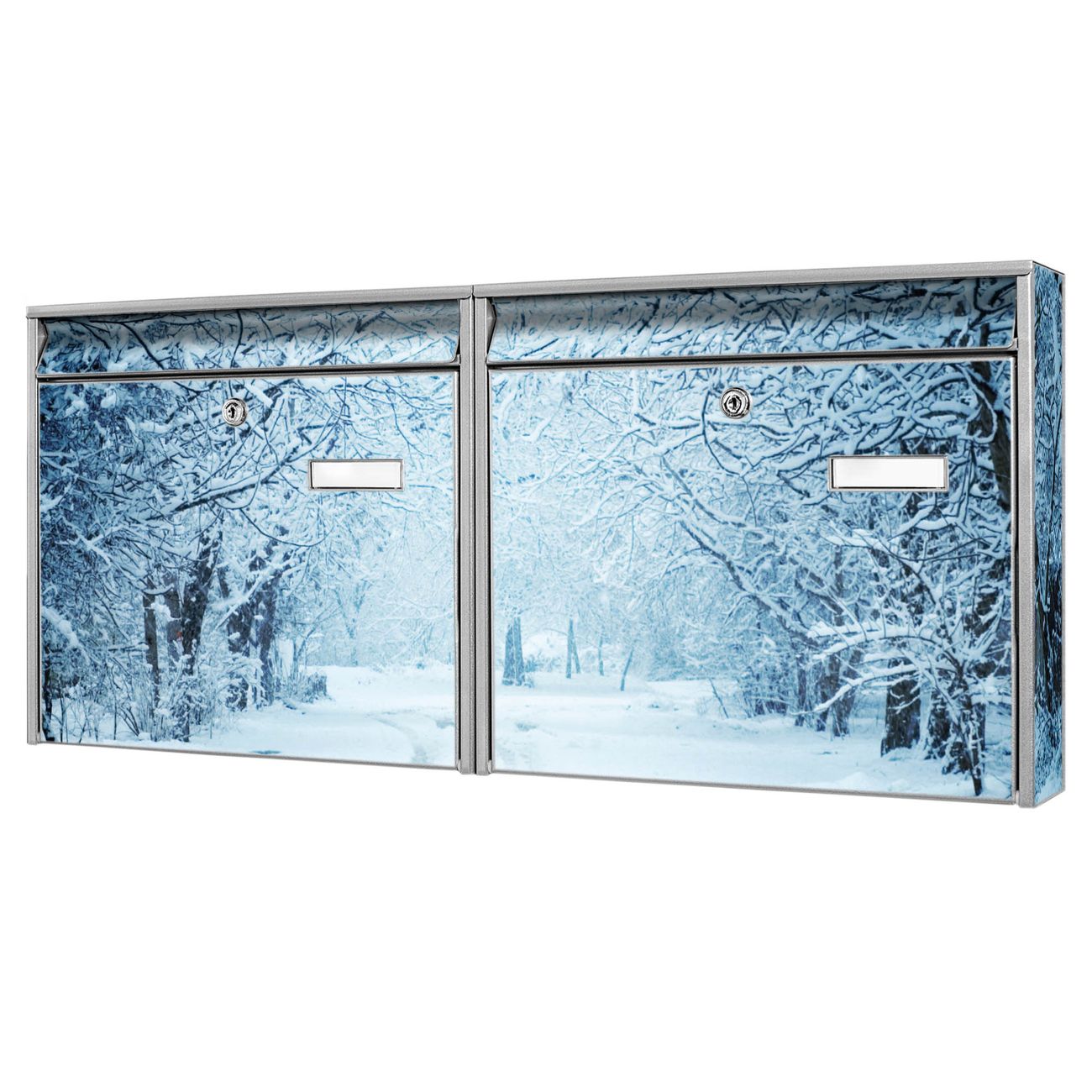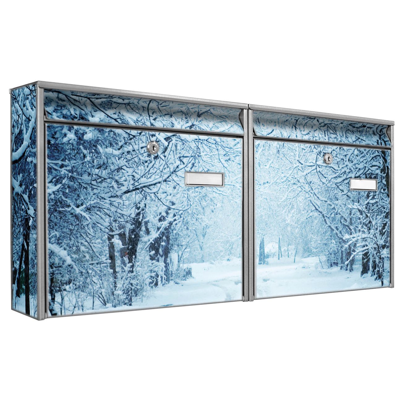 FUNKTION: Die Burg Wächter doppel Briefkastenanlage mit Motiv Winterspaziergang bietet Ihnen ein großes Fassungsvermögen, sodass auch A4 Sendungen eingeworfen werden können. Das Namensschild lässt sich individuell beschriften. DESIGN: Die 2 Briefkästen mit Winterspaziergang Motiv haben ein sehr ansprechendes und zeitloses Design. Heben Sie Sich von der tristen grauen Masse ab, ohne auf Funktionalität zu verzichten. Sie erhalten 2 Schlüssel sowie das Montagematerial. DETAILS: Der Doppelbriefkasten besteht aus verzinktem Stahl weiß. Er ist 72,5cm x 32,2cm x 10cm groß. Das Motiv besteht aus einer wetter- und UV-festen Folie, die Ihren Briefkasten zusätzlich vor Kratzern schützt. NUTZEN: Die stabile Bauart sowie die Wetterfestigkeit machen diese doppel Briefkästen zu einem zuverlässigen Begleiter im Alltag. Effektvoll in Reihe gehangen schmückt die Anlage jede Hauswand. BANJADO: Ihr Briefkasten wird in Sachsen in einer kleinen Manufaktur von Hand veredelt. Die Motivfolie ist lösungsmittelfrei und schutzlaminiert für einen langen Halt. Wir legen großen Wert auf die Verbindung von Funktionalität und Design. Sie erhalten Handarbeit aus Sachsen.