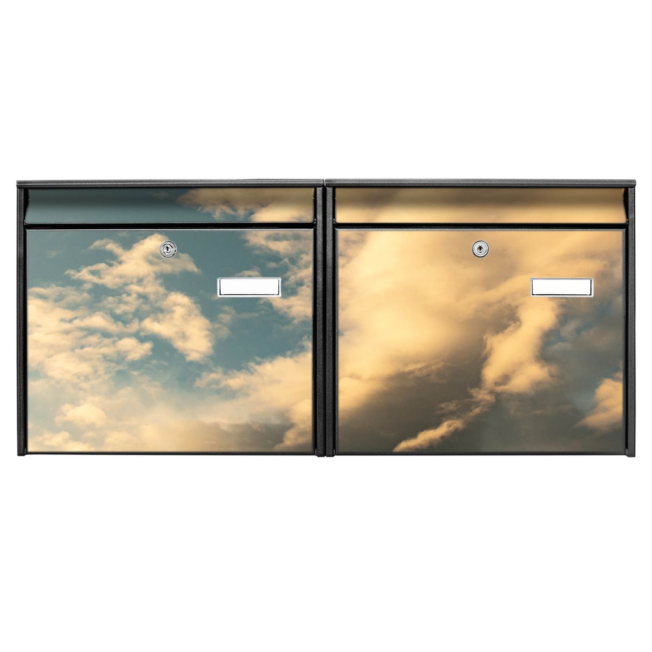 FUNKTION: Die Burg Wächter doppel Briefkastenanlage mit Motiv Wolken 6 bietet Ihnen ein großes Fassungsvermögen, sodass auch A4 Sendungen eingeworfen werden können. Das Namensschild lässt sich individuell beschriften. DESIGN: Die 2 Briefkästen mit Wolken 6 Motiv haben ein sehr ansprechendes und zeitloses Design. Heben Sie Sich von der tristen grauen Masse ab, ohne auf Funktionalität zu verzichten. Sie erhalten 2 Schlüssel sowie das Montagematerial. DETAILS: Der Doppelbriefkasten besteht aus verzinktem Stahl weiß. Er ist 72,5cm x 32,2cm x 10cm groß. Das Motiv besteht aus einer wetter- und UV-festen Folie, die Ihren Briefkasten zusätzlich vor Kratzern schützt. NUTZEN: Die stabile Bauart sowie die Wetterfestigkeit machen diese doppel Briefkästen zu einem zuverlässigen Begleiter im Alltag. Effektvoll in Reihe gehangen schmückt die Anlage jede Hauswand. BANJADO: Ihr Briefkasten wird in Sachsen in einer kleinen Manufaktur von Hand veredelt. Die Motivfolie ist lösungsmittelfrei und schutzlaminiert für einen langen Halt. Wir legen großen Wert auf die Verbindung von Funktionalität und Design. Sie erhalten Handarbeit aus Sachsen.