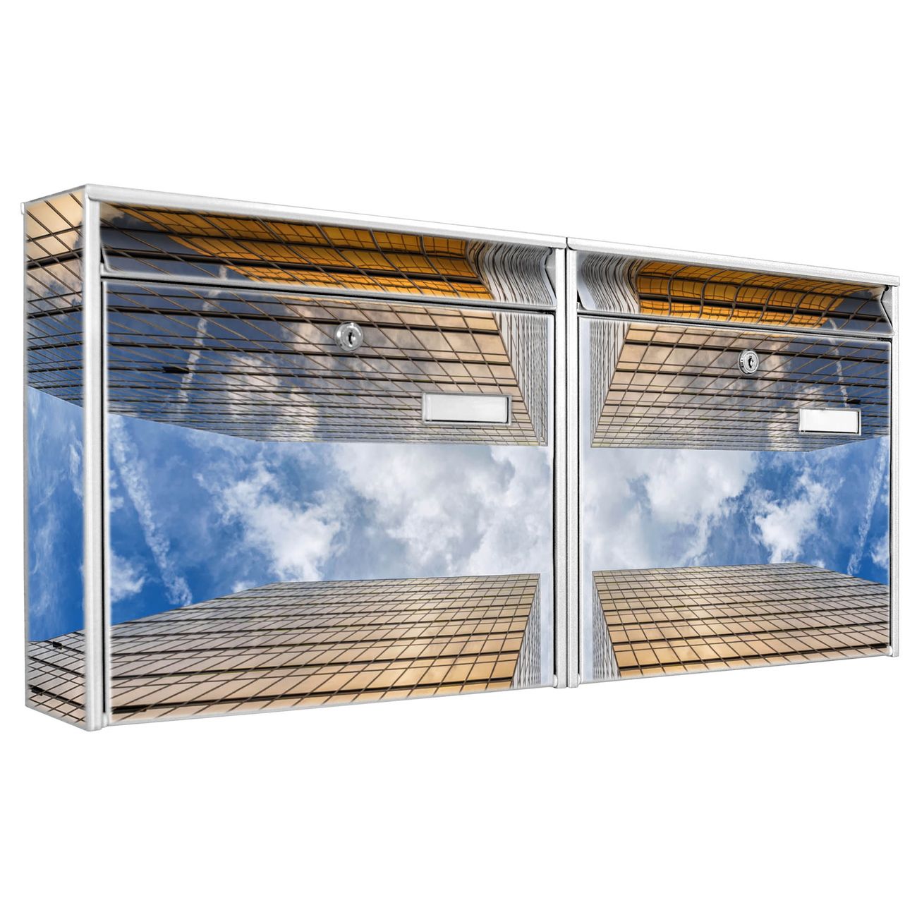 FUNKTION: Die Burg Wächter doppel Briefkastenanlage mit Motiv Wolkenkratzer 2 bietet Ihnen ein großes Fassungsvermögen, sodass auch A4 Sendungen eingeworfen werden können. Das Namensschild lässt sich individuell beschriften. DESIGN: Die 2 Briefkästen mit Wolkenkratzer 2 Motiv haben ein sehr ansprechendes und zeitloses Design. Heben Sie Sich von der tristen grauen Masse ab, ohne auf Funktionalität zu verzichten. Sie erhalten 2 Schlüssel sowie das Montagematerial. DETAILS: Der Doppelbriefkasten besteht aus verzinktem Stahl weiß. Er ist 72,5cm x 32,2cm x 10cm groß. Das Motiv besteht aus einer wetter- und UV-festen Folie, die Ihren Briefkasten zusätzlich vor Kratzern schützt. NUTZEN: Die stabile Bauart sowie die Wetterfestigkeit machen diese doppel Briefkästen zu einem zuverlässigen Begleiter im Alltag. Effektvoll in Reihe gehangen schmückt die Anlage jede Hauswand. BANJADO: Ihr Briefkasten wird in Sachsen in einer kleinen Manufaktur von Hand veredelt. Die Motivfolie ist lösungsmittelfrei und schutzlaminiert für einen langen Halt. Wir legen großen Wert auf die Verbindung von Funktionalität und Design. Sie erhalten Handarbeit aus Sachsen.