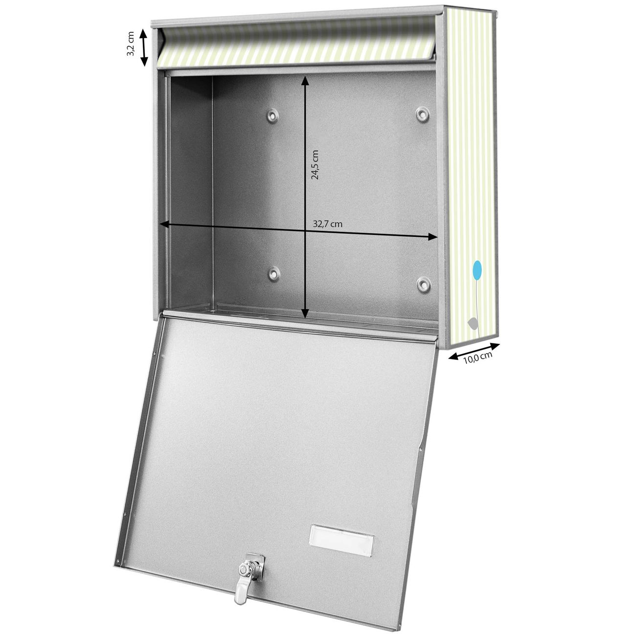 - je Briefschlitz: 34,5 x 3,8cm (B x H)
