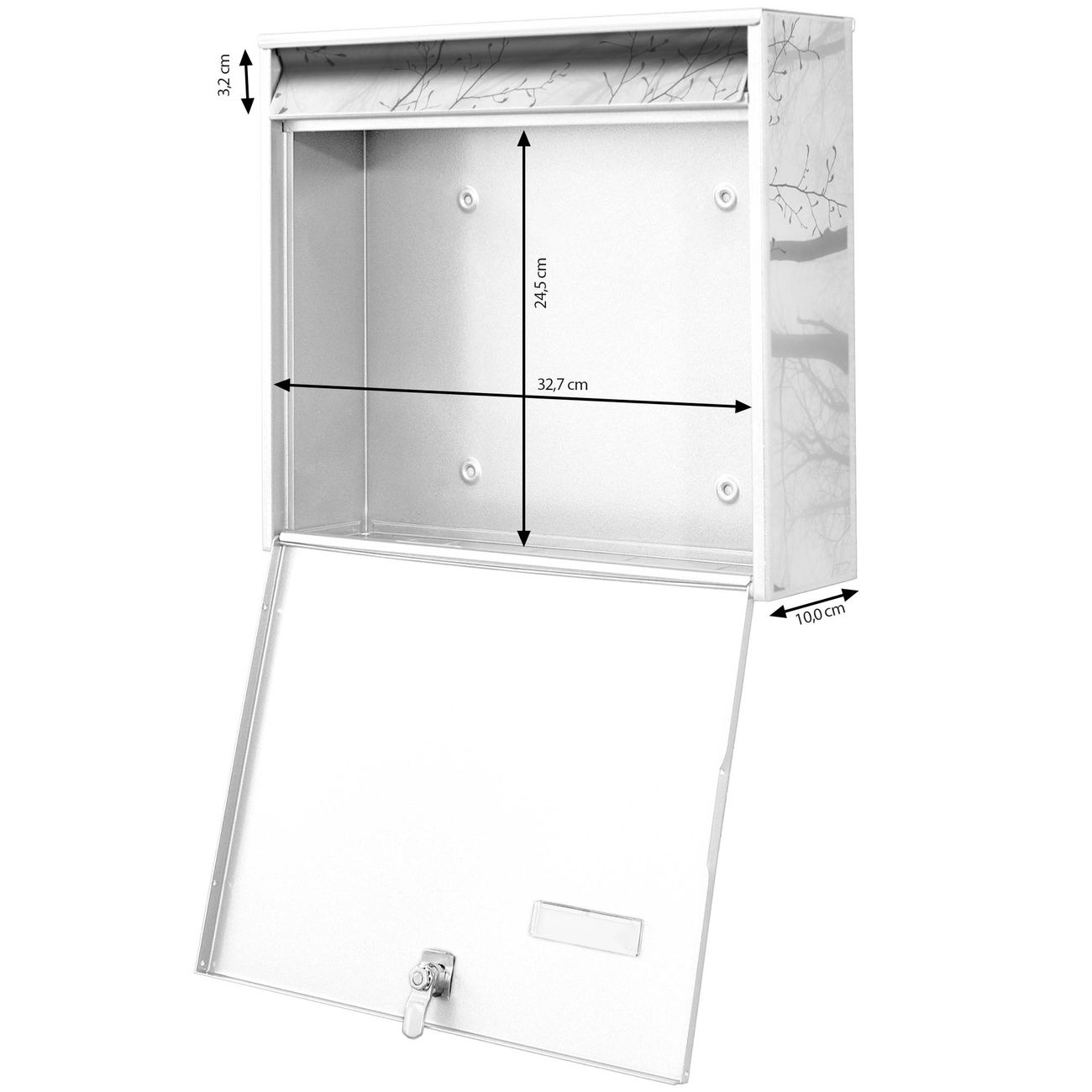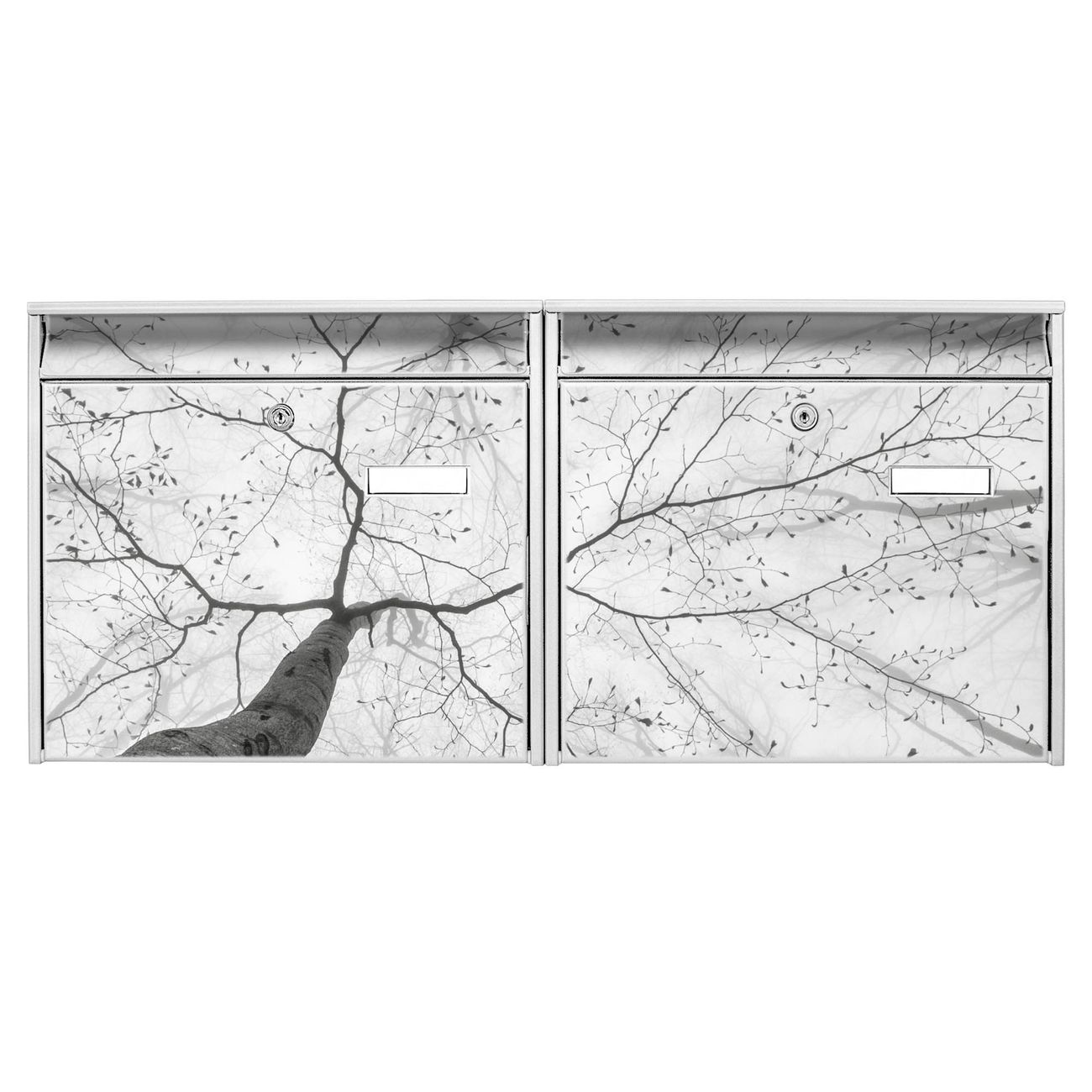 FUNKTION: Die Burg Wächter doppel Briefkastenanlage mit Motiv Zwischen Bäumen 6 bietet Ihnen ein großes Fassungsvermögen, sodass auch A4 Sendungen eingeworfen werden können. Das Namensschild lässt sich individuell beschriften. DESIGN: Die 2 Briefkästen mit Zwischen Bäumen 6 Motiv haben ein sehr ansprechendes und zeitloses Design. Heben Sie Sich von der tristen grauen Masse ab, ohne auf Funktionalität zu verzichten. Sie erhalten 2 Schlüssel sowie das Montagematerial. DETAILS: Der Doppelbriefkasten besteht aus verzinktem Stahl weiß. Er ist 72,5cm x 32,2cm x 10cm groß. Das Motiv besteht aus einer wetter- und UV-festen Folie, die Ihren Briefkasten zusätzlich vor Kratzern schützt. NUTZEN: Die stabile Bauart sowie die Wetterfestigkeit machen diese doppel Briefkästen zu einem zuverlässigen Begleiter im Alltag. Effektvoll in Reihe gehangen schmückt die Anlage jede Hauswand. BANJADO: Ihr Briefkasten wird in Sachsen in einer kleinen Manufaktur von Hand veredelt. Die Motivfolie ist lösungsmittelfrei und schutzlaminiert für einen langen Halt. Wir legen großen Wert auf die Verbindung von Funktionalität und Design. Sie erhalten Handarbeit aus Sachsen.