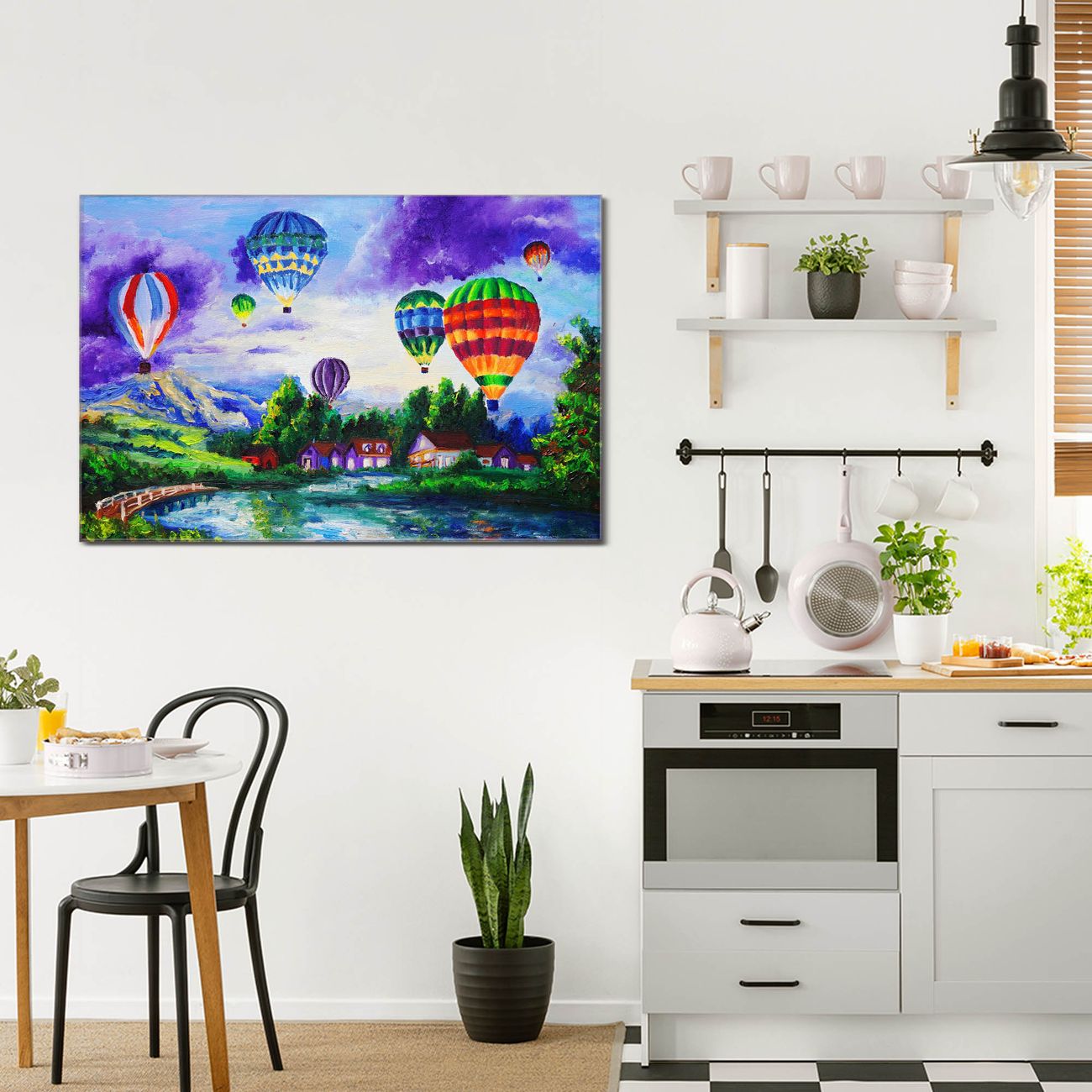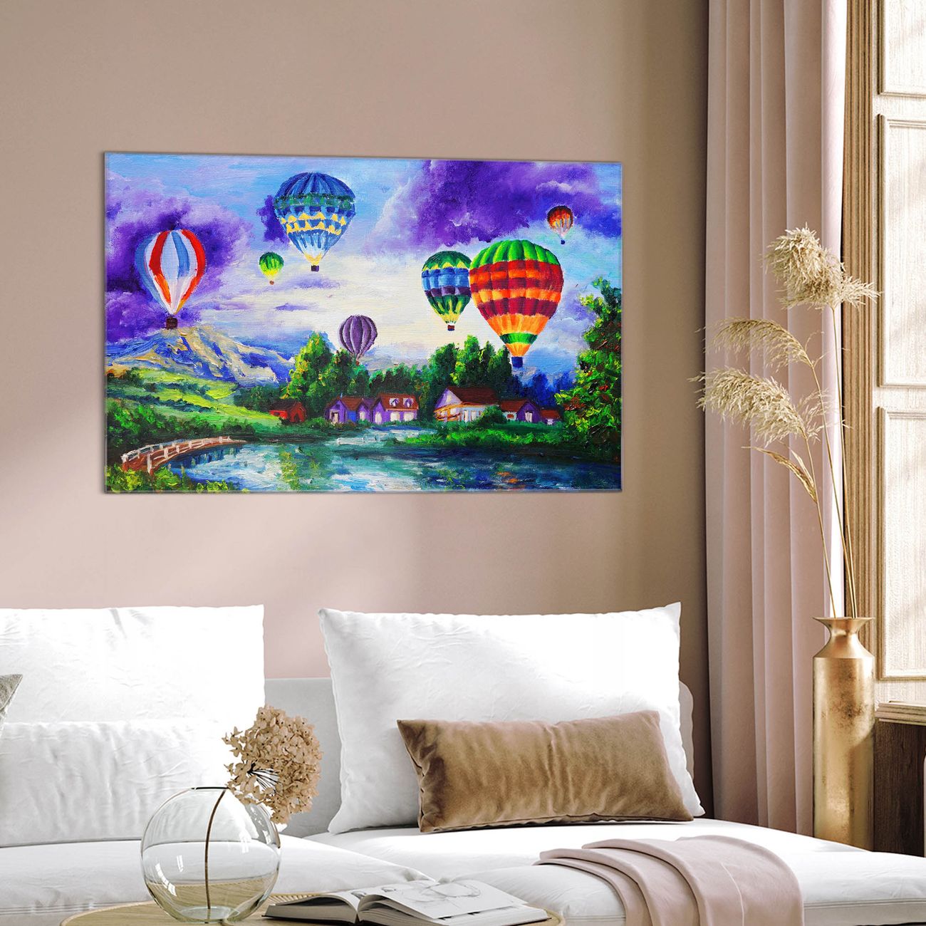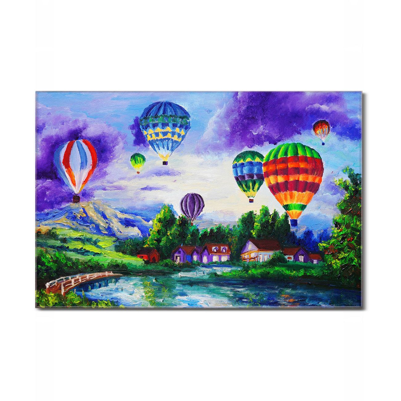 Einzigartiges Wandbild im Querformat Ballons In Lila Wolken