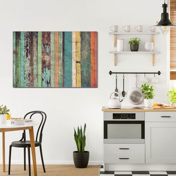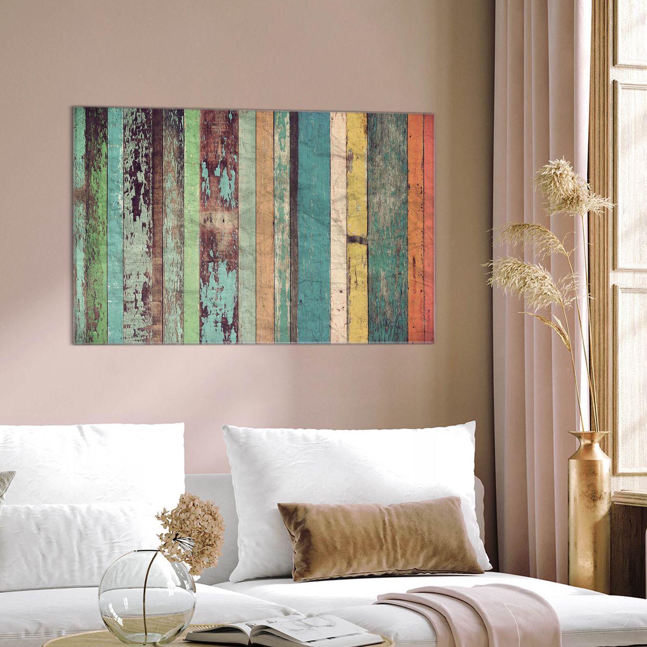 Einzigartiges Wandbild im Querformat Bunte Bretterwand