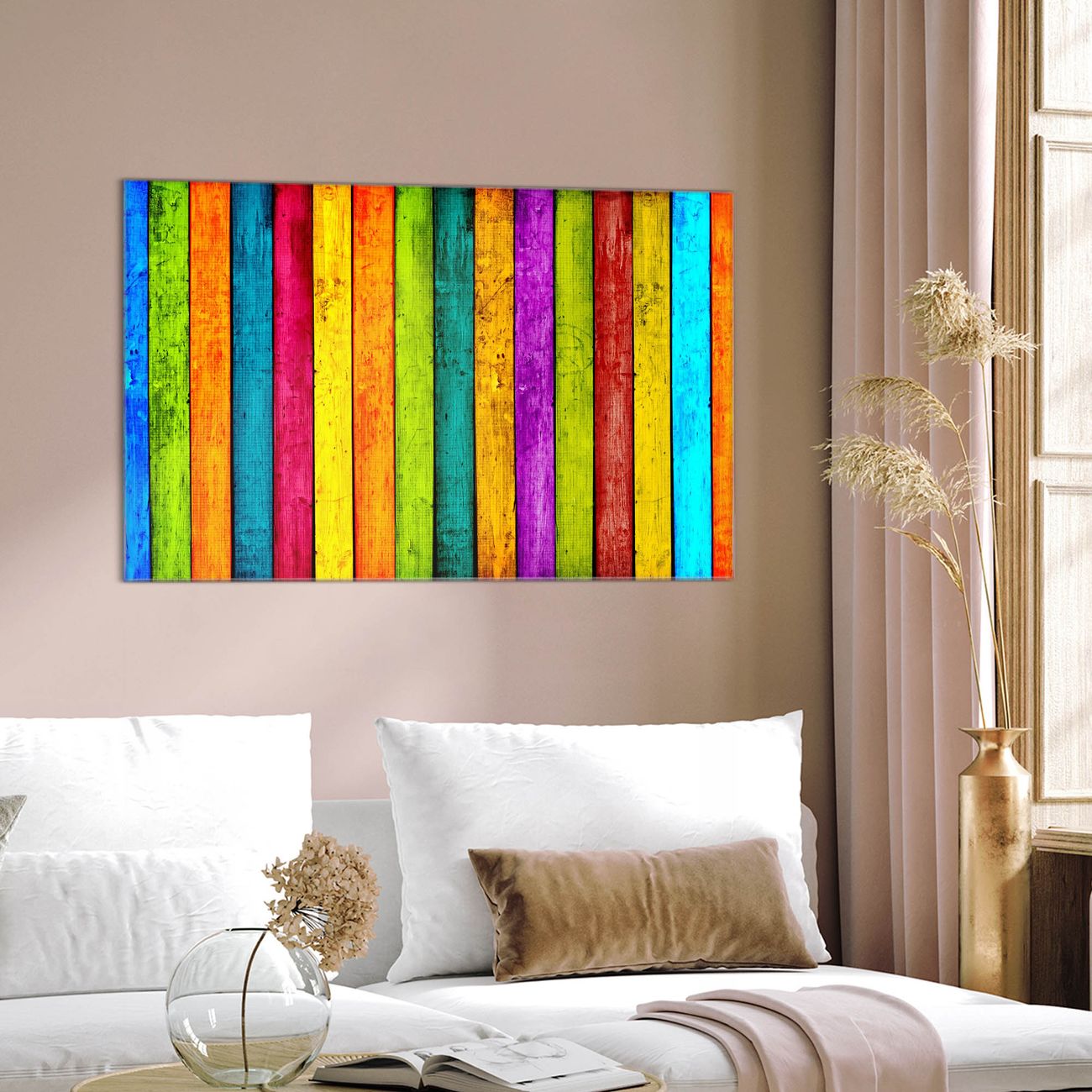 Einzigartiges Wandbild im Querformat Bunte Holzlatten