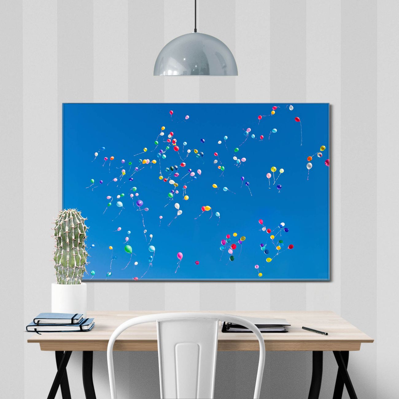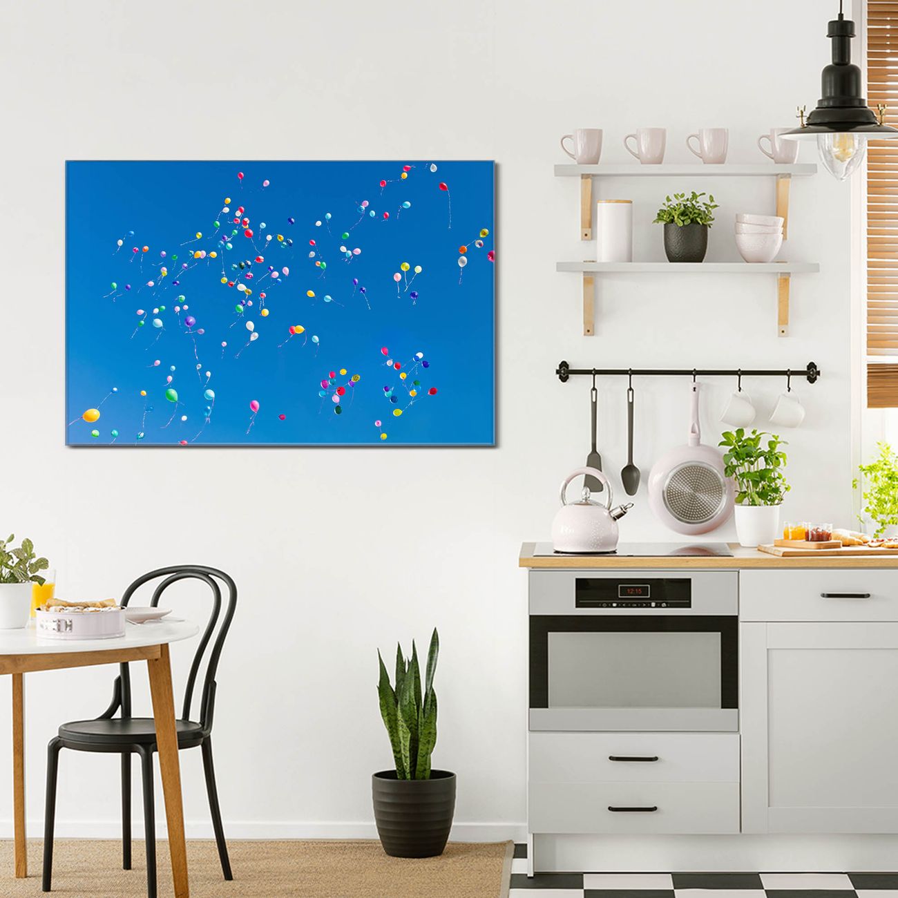 Unsere einzigartigen Glasbilder im Querformat von banjado mit Motiv Bunte Luftballons sind der absolute Hingucker! Unsere Banjado Glasbilder sind sehr begehrt, weil sie top verarbeitet sind und sich ganz leicht montieren lassen. Schon mit wenigen Handgriffen hängen sie an der Wand und strahlen mit höchster brillianz. Durch die Ramenlose Herstellung schwebt das Echtglasbild förmlich an der Wand. Das Motiv erscheint besonders ausdrucksstark und hochwertig und ist hinter dem Echtglas geschützt.