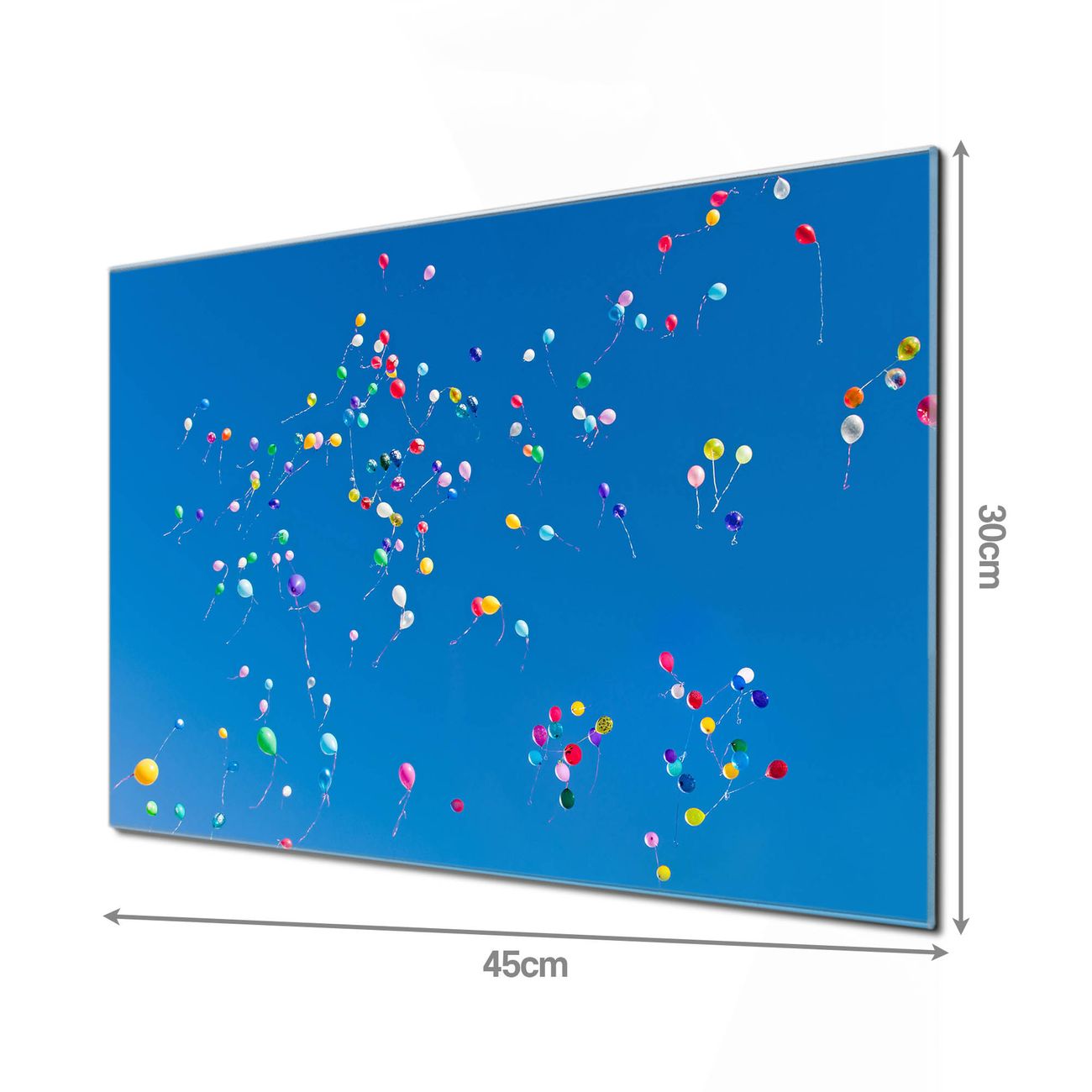 Unsere einzigartigen Glasbilder im Querformat von banjado mit Motiv Bunte Luftballons sind der absolute Hingucker! Unsere Banjado Glasbilder sind sehr begehrt, weil sie top verarbeitet sind und sich ganz leicht montieren lassen. Schon mit wenigen Handgriffen hängen sie an der Wand und strahlen mit höchster brillianz. Durch die Ramenlose Herstellung schwebt das Echtglasbild förmlich an der Wand. Das Motiv erscheint besonders ausdrucksstark und hochwertig und ist hinter dem Echtglas geschützt.
