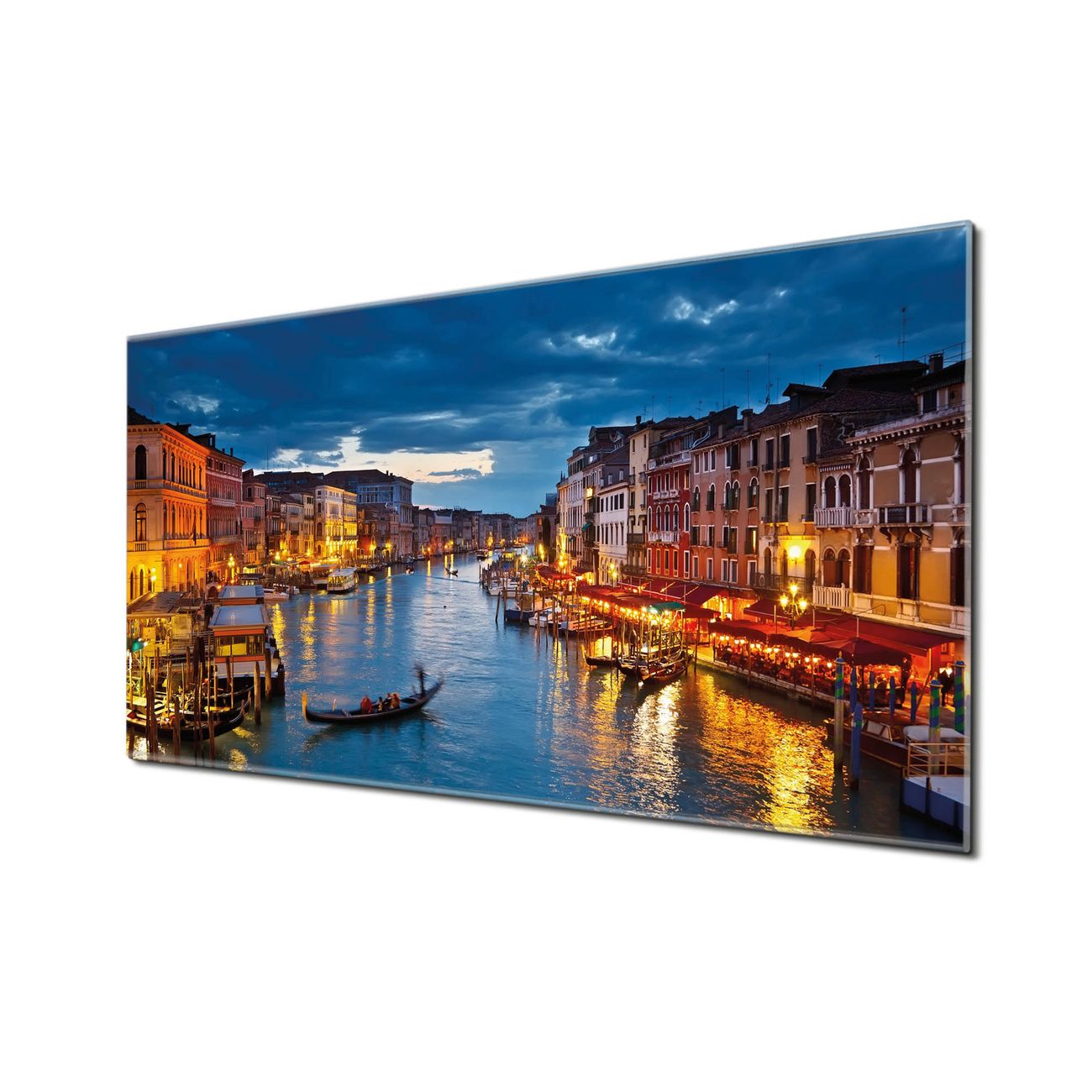 Unsere einzigartigen Glasbilder im Querformat von banjado mit Motiv Canale Grande Bei Nacht sind der absolute Hingucker! Unsere Banjado Glasbilder sind sehr begehrt, weil sie top verarbeitet sind und sich ganz leicht montieren lassen. Schon mit wenigen Handgriffen hängen sie an der Wand und strahlen mit höchster brillianz. Durch die Ramenlose Herstellung schwebt das Echtglasbild förmlich an der Wand. Das Motiv erscheint besonders ausdrucksstark und hochwertig und ist hinter dem Echtglas geschützt.