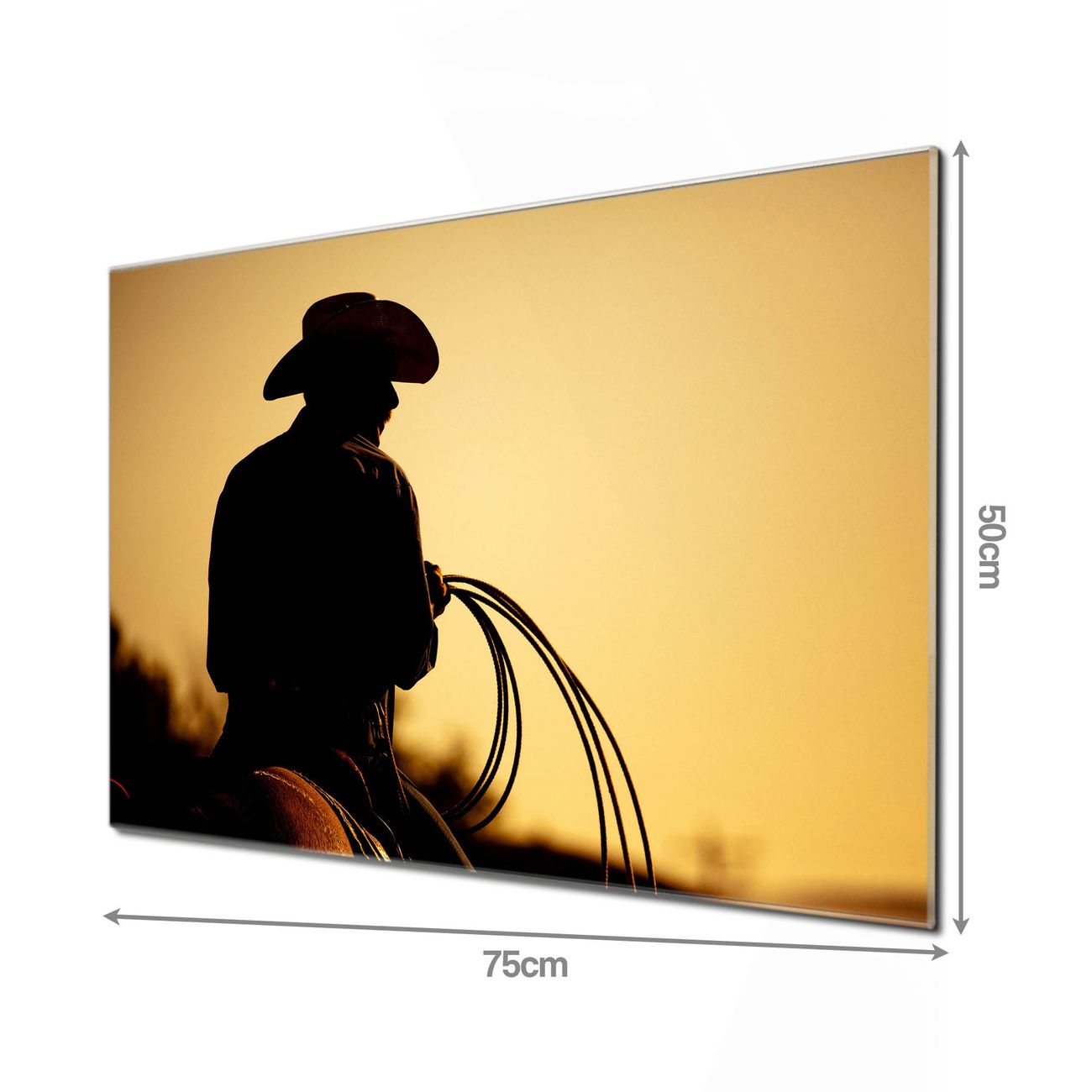 Unsere einzigartigen Glasbilder im Querformat von banjado mit Motiv Cowboy sind der absolute Hingucker! Unsere Banjado Glasbilder sind sehr begehrt, weil sie top verarbeitet sind und sich ganz leicht montieren lassen. Schon mit wenigen Handgriffen hängen sie an der Wand und strahlen mit höchster brillianz. Durch die Ramenlose Herstellung schwebt das Echtglasbild förmlich an der Wand. Das Motiv erscheint besonders ausdrucksstark und hochwertig und ist hinter dem Echtglas geschützt.