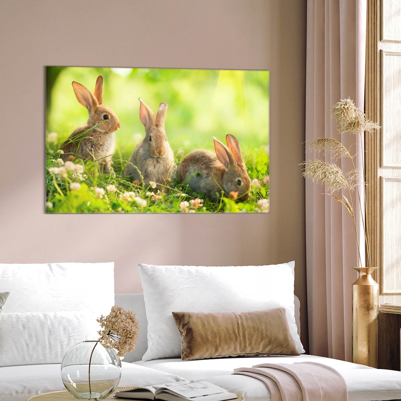 Einzigartiges Wandbild im Querformat Drei Hasen