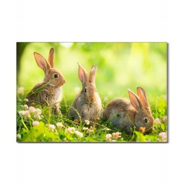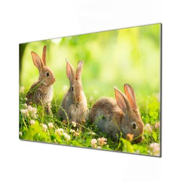 Unsere einzigartigen Glasbilder im Querformat von banjado mit Motiv Drei Hasen sind der absolute Hingucker! Unsere Banjado Glasbilder sind sehr begehrt, weil sie top verarbeitet sind und sich ganz leicht montieren lassen. Schon mit wenigen Handgriffen hängen sie an der Wand und strahlen mit höchster brillianz. Durch die Ramenlose Herstellung schwebt das Echtglasbild förmlich an der Wand. Das Motiv erscheint besonders ausdrucksstark und hochwertig und ist hinter dem Echtglas geschützt.