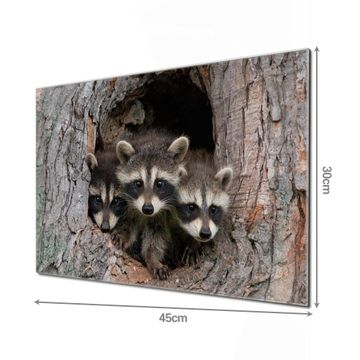 Unsere einzigartigen Glasbilder im Querformat von banjado mit Motiv Drei Waschbären sind der absolute Hingucker! Unsere Banjado Glasbilder sind sehr begehrt, weil sie top verarbeitet sind und sich ganz leicht montieren lassen. Schon mit wenigen Handgriffen hängen sie an der Wand und strahlen mit höchster brillianz. Durch die Ramenlose Herstellung schwebt das Echtglasbild förmlich an der Wand. Das Motiv erscheint besonders ausdrucksstark und hochwertig und ist hinter dem Echtglas geschützt.