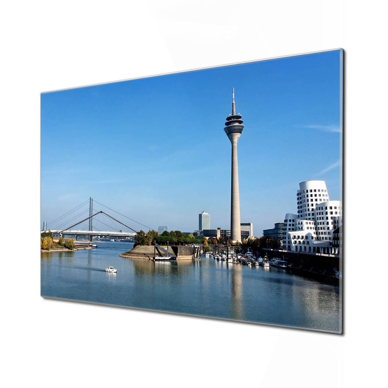 Unsere einzigartigen Glasbilder im Querformat von banjado mit Motiv Düsseldorf sind der absolute Hingucker! Unsere Banjado Glasbilder sind sehr begehrt, weil sie top verarbeitet sind und sich ganz leicht montieren lassen. Schon mit wenigen Handgriffen hängen sie an der Wand und strahlen mit höchster brillianz. Durch die Ramenlose Herstellung schwebt das Echtglasbild förmlich an der Wand. Das Motiv erscheint besonders ausdrucksstark und hochwertig und ist hinter dem Echtglas geschützt.
