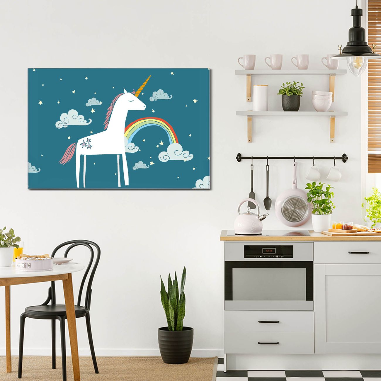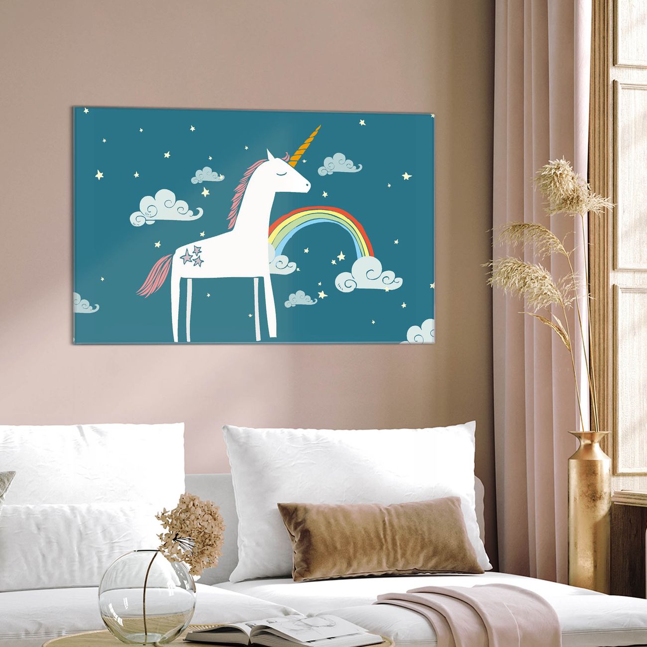 Unsere einzigartigen Glasbilder im Querformat von banjado mit Motiv Einhorn sind der absolute Hingucker! Unsere Banjado Glasbilder sind sehr begehrt, weil sie top verarbeitet sind und sich ganz leicht montieren lassen. Schon mit wenigen Handgriffen hängen sie an der Wand und strahlen mit höchster brillianz. Durch die Ramenlose Herstellung schwebt das Echtglasbild förmlich an der Wand. Das Motiv erscheint besonders ausdrucksstark und hochwertig und ist hinter dem Echtglas geschützt.
