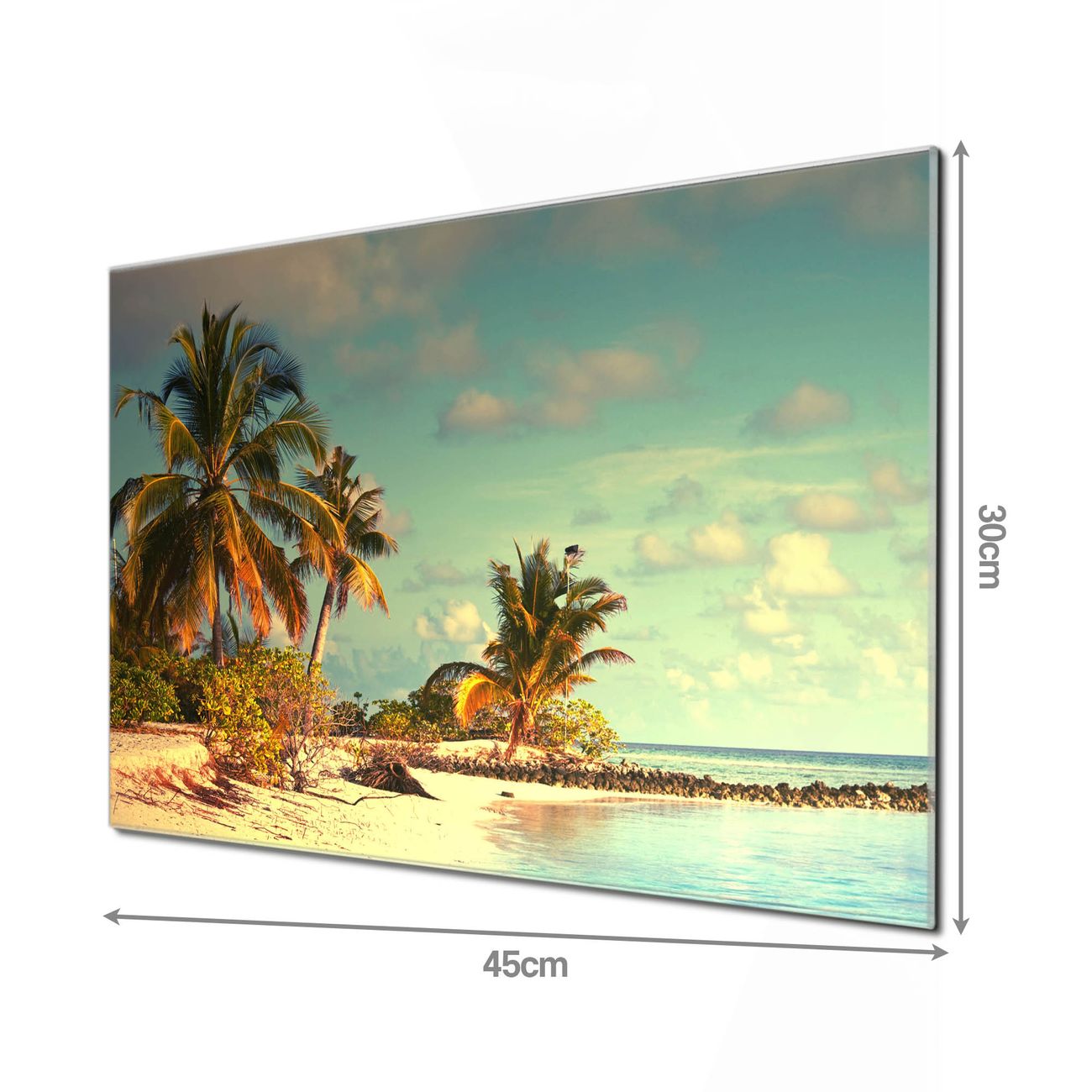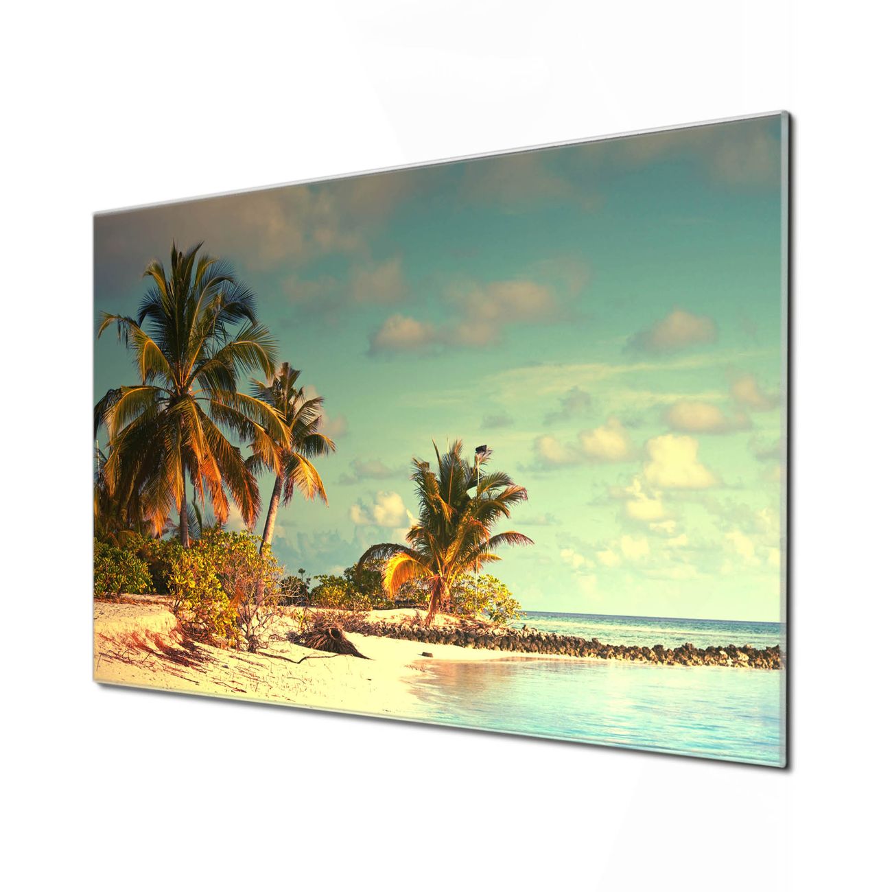 Unsere einzigartigen Glasbilder im Querformat von banjado mit Motiv Einsame Insel sind der absolute Hingucker! Unsere Banjado Glasbilder sind sehr begehrt, weil sie top verarbeitet sind und sich ganz leicht montieren lassen. Schon mit wenigen Handgriffen hängen sie an der Wand und strahlen mit höchster brillianz. Durch die Ramenlose Herstellung schwebt das Echtglasbild förmlich an der Wand. Das Motiv erscheint besonders ausdrucksstark und hochwertig und ist hinter dem Echtglas geschützt.