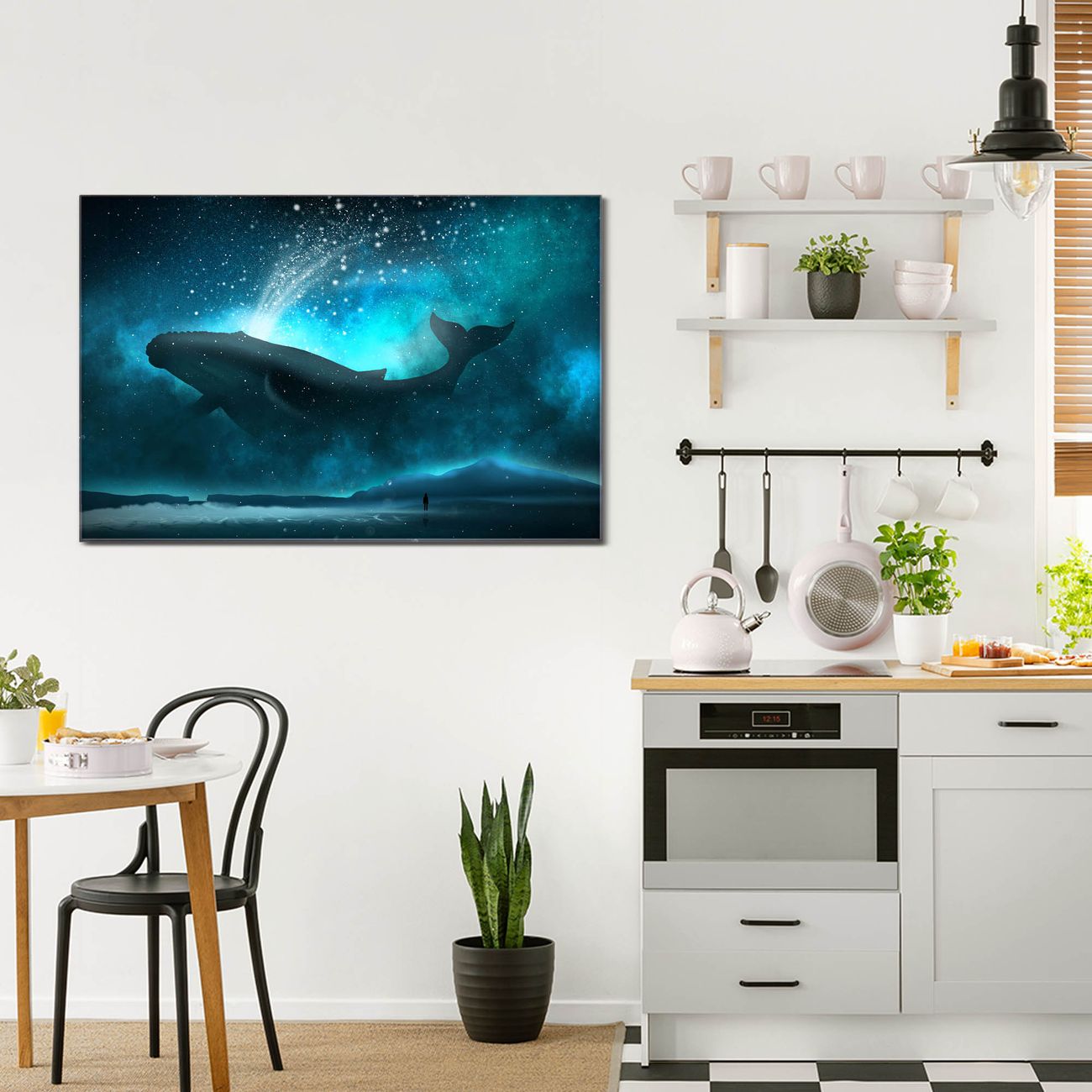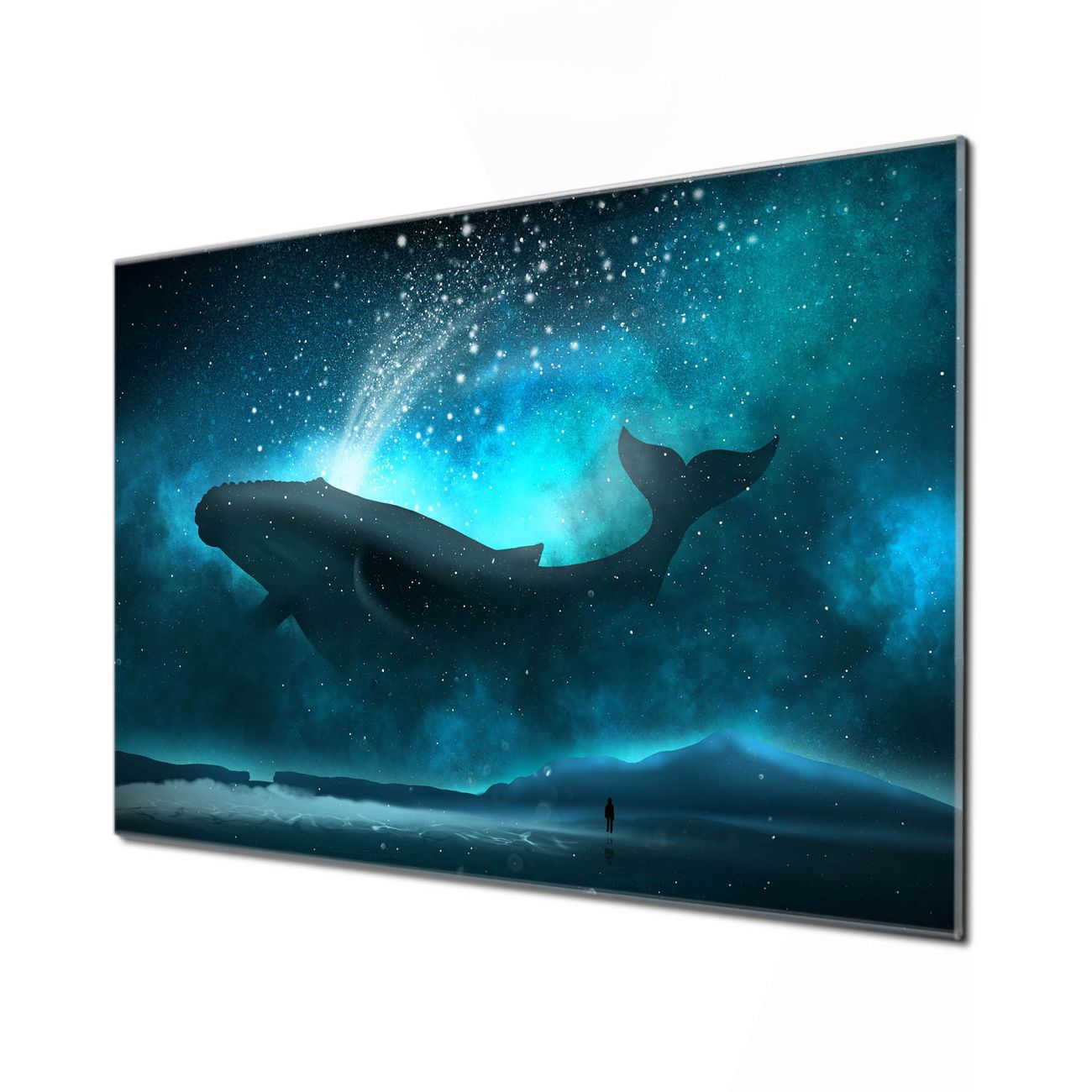 Unsere einzigartigen Glasbilder im Querformat von banjado mit Motiv fliegender Wal sind der absolute Hingucker! Unsere Banjado Glasbilder sind sehr begehrt, weil sie top verarbeitet sind und sich ganz leicht montieren lassen. Schon mit wenigen Handgriffen hängen sie an der Wand und strahlen mit höchster brillianz. Durch die Ramenlose Herstellung schwebt das Echtglasbild förmlich an der Wand. Das Motiv erscheint besonders ausdrucksstark und hochwertig und ist hinter dem Echtglas geschützt.