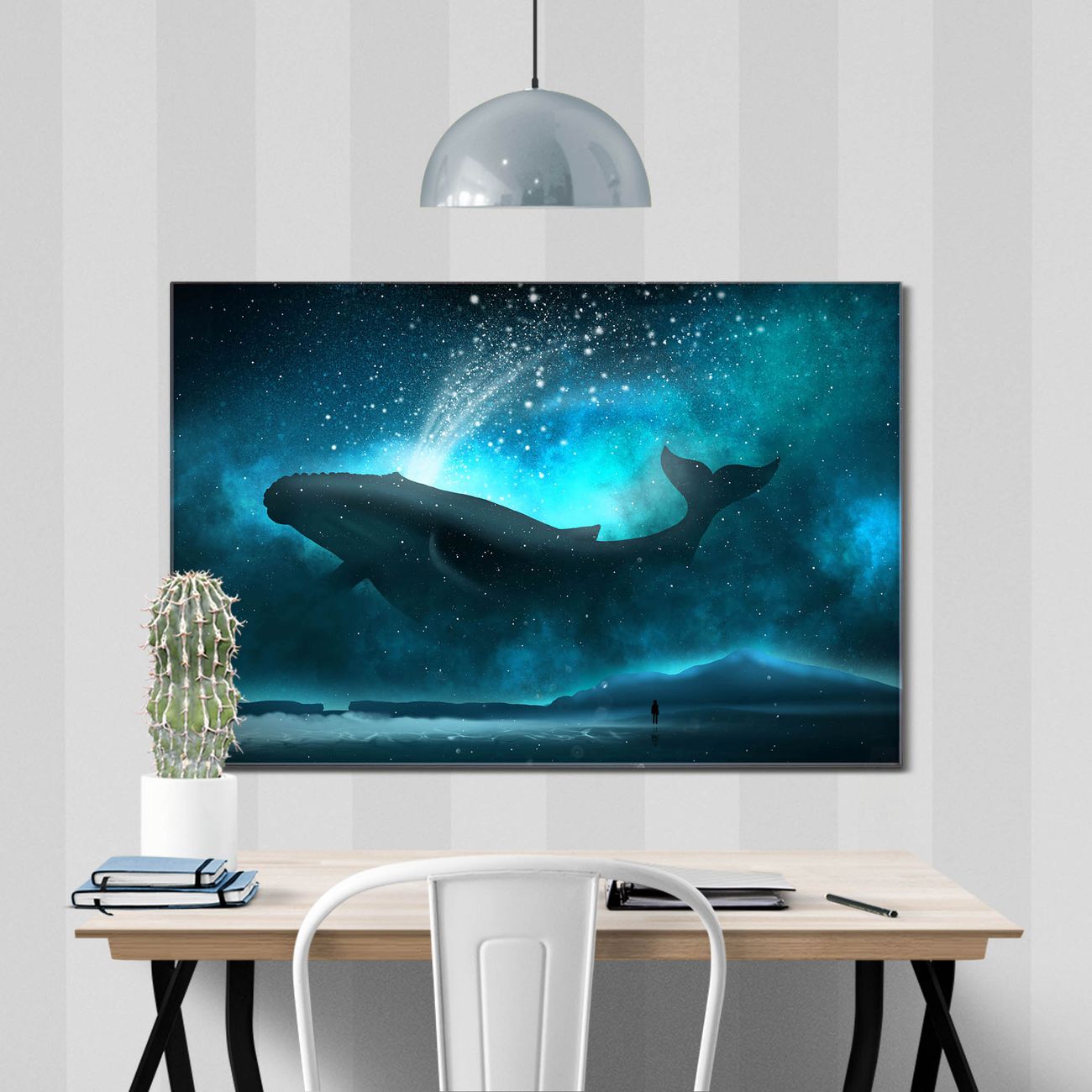 Einzigartiges Wandbild im Querformat fliegender Wal