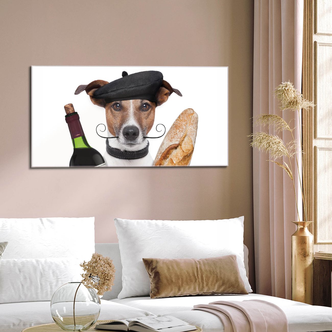 Unsere einzigartigen Glasbilder im Querformat von banjado mit Motiv Franzose Jack Russel sind der absolute Hingucker! Unsere Banjado Glasbilder sind sehr begehrt, weil sie top verarbeitet sind und sich ganz leicht montieren lassen. Schon mit wenigen Handgriffen hängen sie an der Wand und strahlen mit höchster brillianz. Durch die Ramenlose Herstellung schwebt das Echtglasbild förmlich an der Wand. Das Motiv erscheint besonders ausdrucksstark und hochwertig und ist hinter dem Echtglas geschützt.