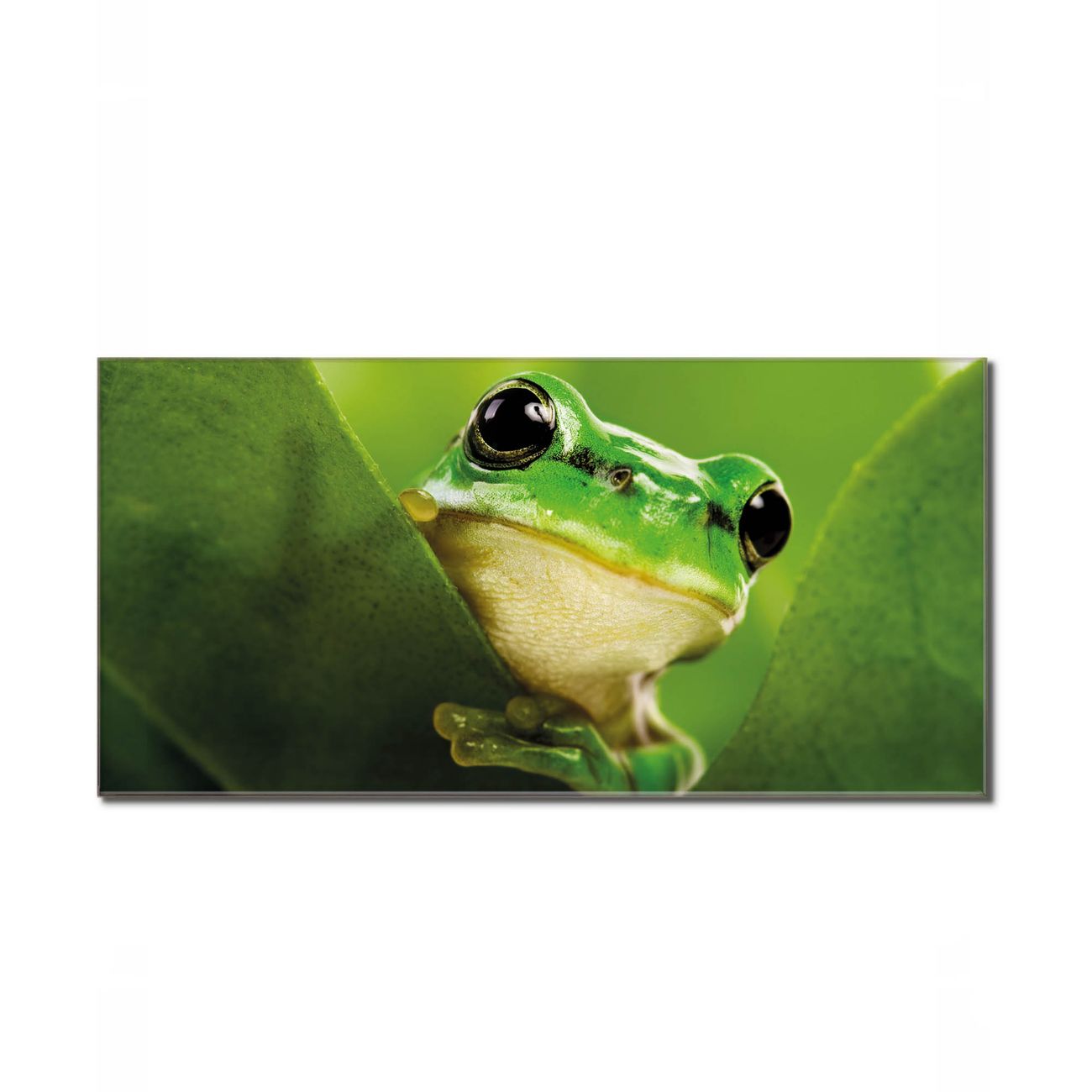Unsere einzigartigen Glasbilder im Querformat von banjado mit Motiv Frosch sind der absolute Hingucker! Unsere Banjado Glasbilder sind sehr begehrt, weil sie top verarbeitet sind und sich ganz leicht montieren lassen. Schon mit wenigen Handgriffen hängen sie an der Wand und strahlen mit höchster brillianz. Durch die Ramenlose Herstellung schwebt das Echtglasbild förmlich an der Wand. Das Motiv erscheint besonders ausdrucksstark und hochwertig und ist hinter dem Echtglas geschützt.