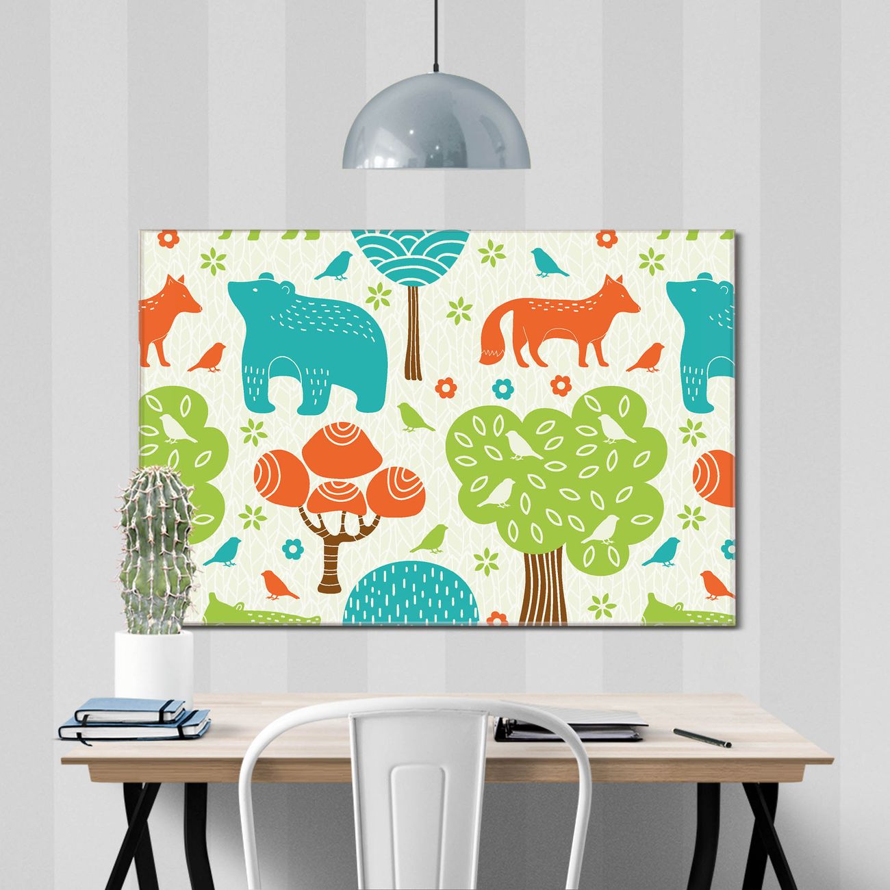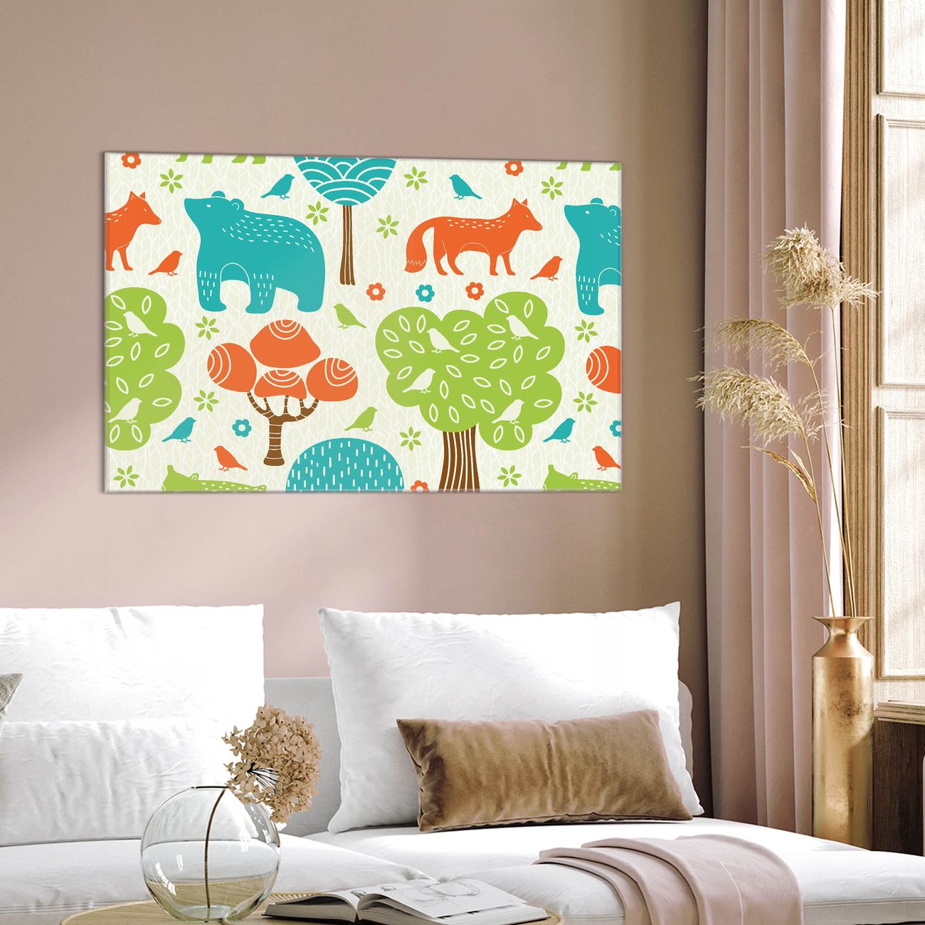 Einzigartiges Wandbild im Querformat Fuchs Bär Wald