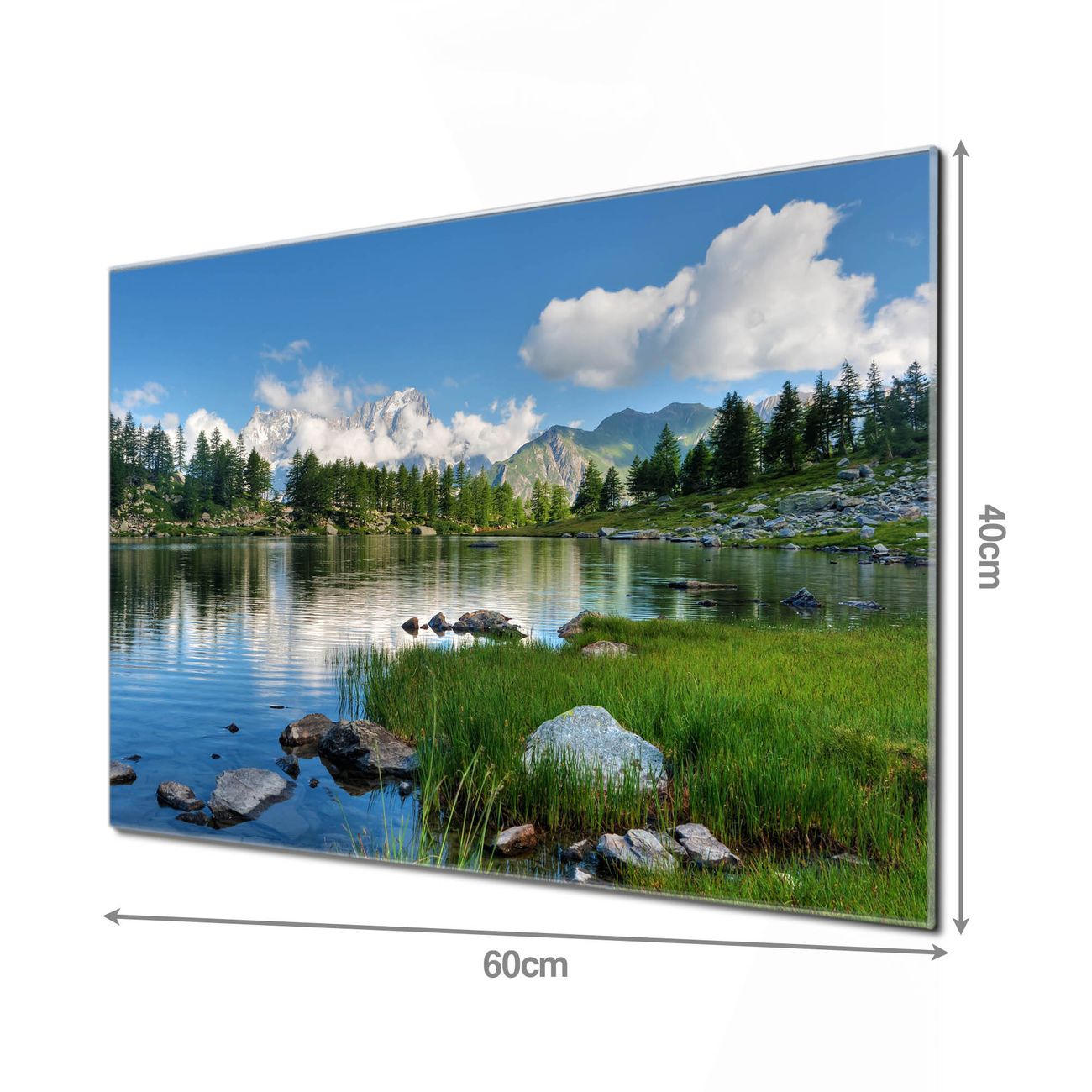 Unsere einzigartigen Glasbilder im Querformat von banjado mit Motiv Gebirgssee sind der absolute Hingucker! Unsere Banjado Glasbilder sind sehr begehrt, weil sie top verarbeitet sind und sich ganz leicht montieren lassen. Schon mit wenigen Handgriffen hängen sie an der Wand und strahlen mit höchster brillianz. Durch die Ramenlose Herstellung schwebt das Echtglasbild förmlich an der Wand. Das Motiv erscheint besonders ausdrucksstark und hochwertig und ist hinter dem Echtglas geschützt.