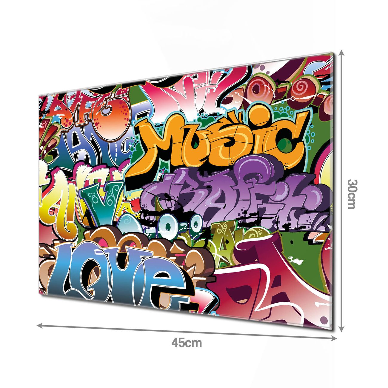 Unsere einzigartigen Glasbilder im Querformat von banjado mit Motiv Graffiti sind der absolute Hingucker! Unsere Banjado Glasbilder sind sehr begehrt, weil sie top verarbeitet sind und sich ganz leicht montieren lassen. Schon mit wenigen Handgriffen hängen sie an der Wand und strahlen mit höchster brillianz. Durch die Ramenlose Herstellung schwebt das Echtglasbild förmlich an der Wand. Das Motiv erscheint besonders ausdrucksstark und hochwertig und ist hinter dem Echtglas geschützt.