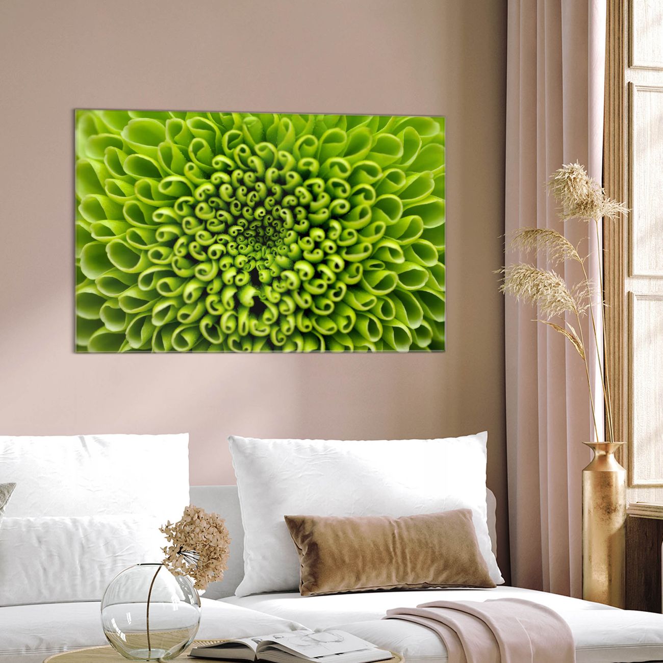 Einzigartiges Wandbild im Querformat Grüne Chrysantheme