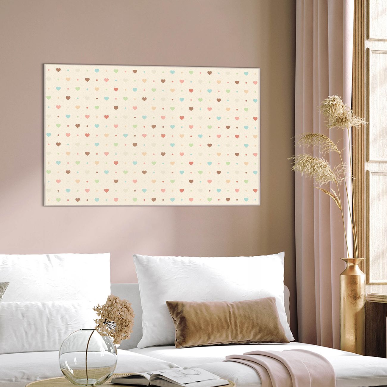 Einzigartiges Wandbild im Querformat Herzen bunt