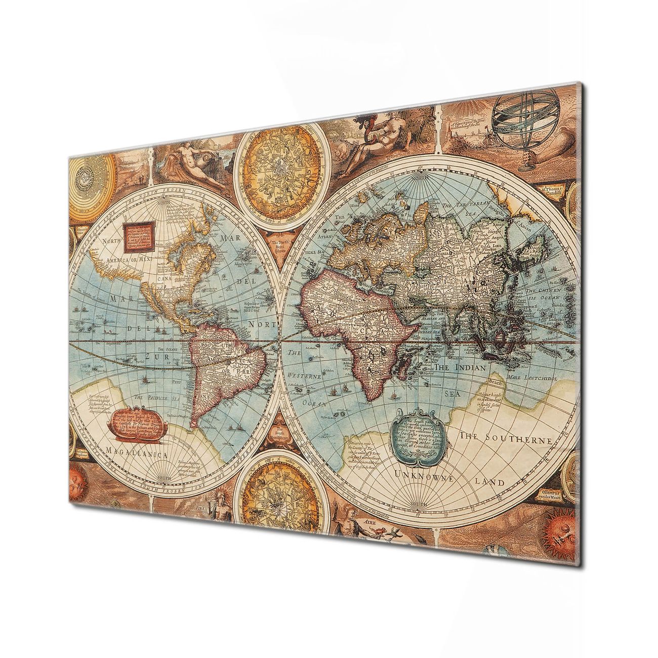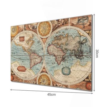 Unsere einzigartigen Glasbilder im Querformat von banjado mit Motiv Historische Weltkarte sind der absolute Hingucker! Unsere Banjado Glasbilder sind sehr begehrt, weil sie top verarbeitet sind und sich ganz leicht montieren lassen. Schon mit wenigen Handgriffen hängen sie an der Wand und strahlen mit höchster brillianz. Durch die Ramenlose Herstellung schwebt das Echtglasbild förmlich an der Wand. Das Motiv erscheint besonders ausdrucksstark und hochwertig und ist hinter dem Echtglas geschützt.